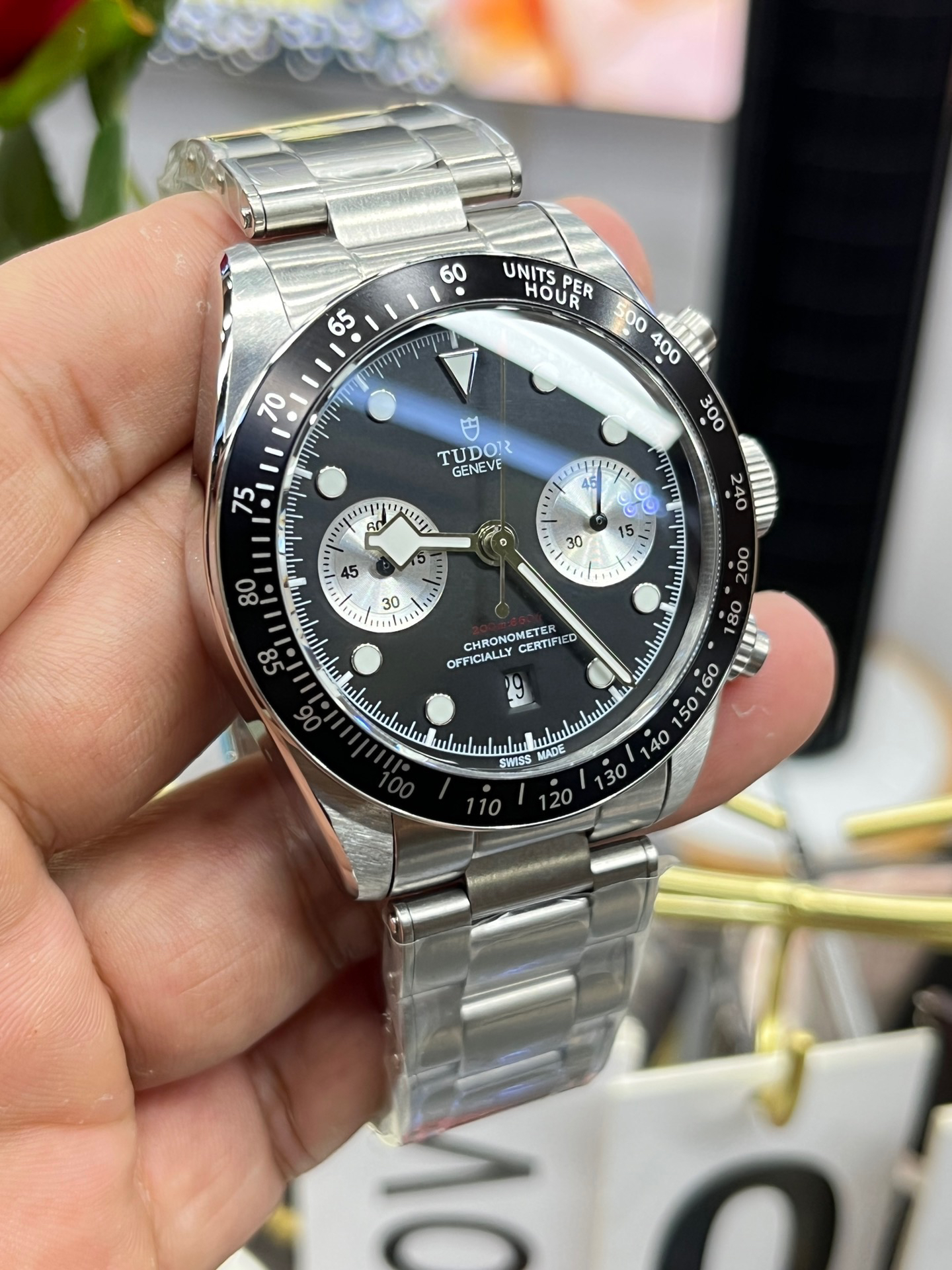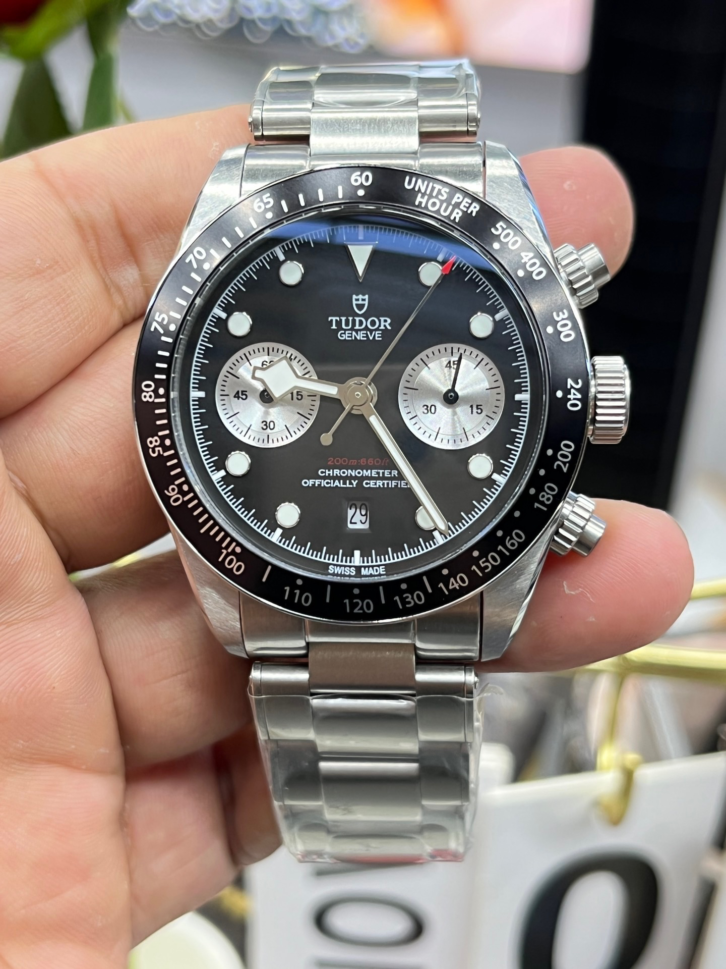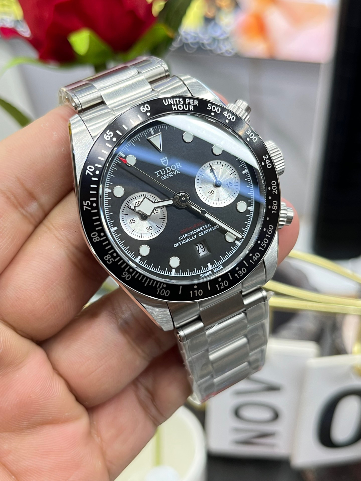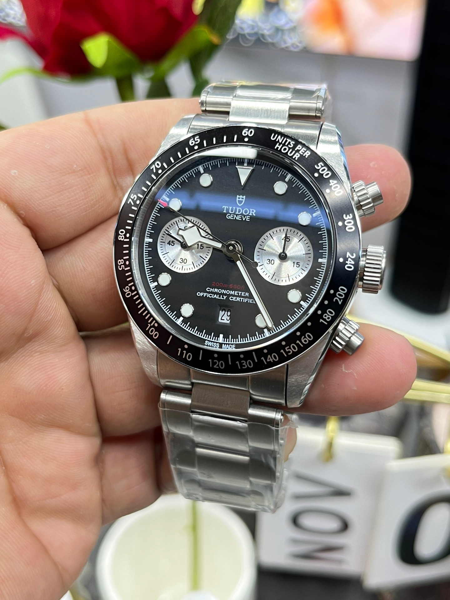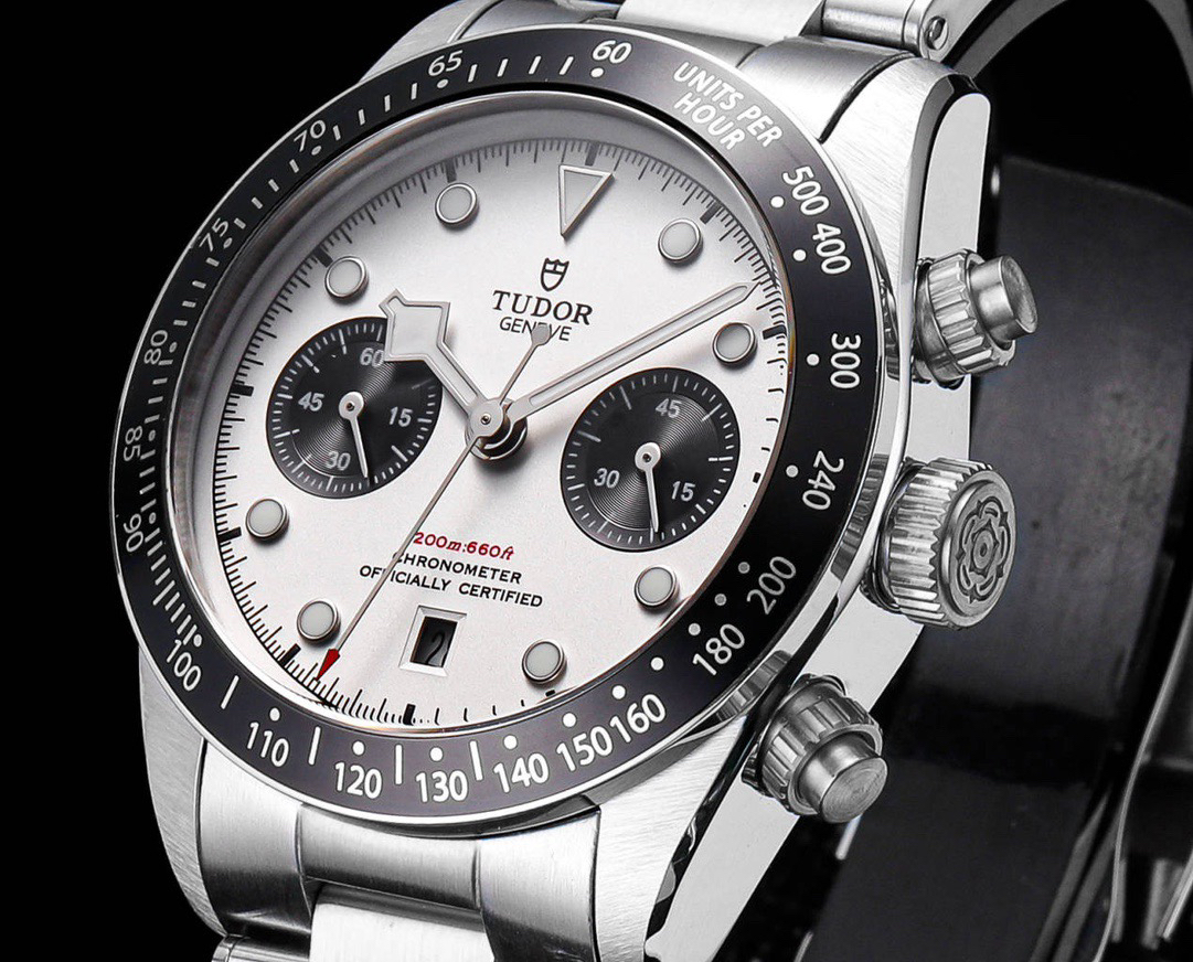 NOOB Maker出品,必属精品‼️TUDOR帝舵—碧湾计时型(Black Bay Chrono)精钢款腕表!🆕 细致刻画表盘完美对称,纹路清晰、提升质感与美感!采用磨砂及磨光搭配正品一致的316L精钢打造!🔥 直径41MM!圆拱形表盘一比一完美还原!帝舵标志性雪花指针 更具代表!搭载全新亚洲定制版7750多功能机械机芯,还原正品所有功能,完美呈现计时功能!旋入式把头深度防水,超强夜光,高端工艺品质上乘!计时腕表的外观个性十足,兼备运动气息与时髦风尚‼️