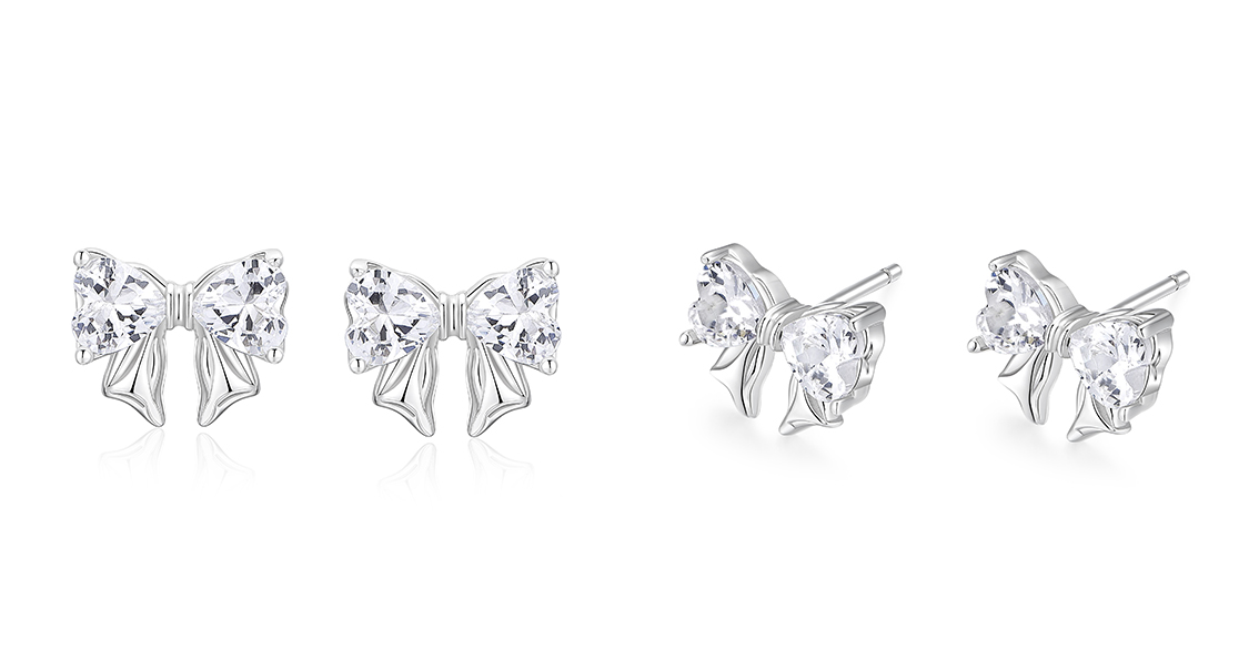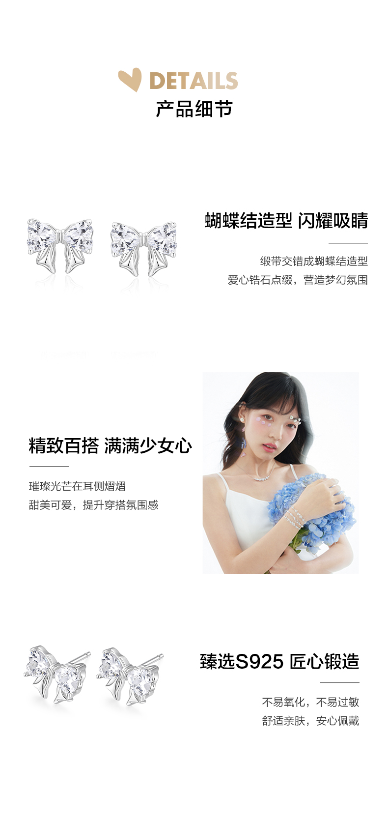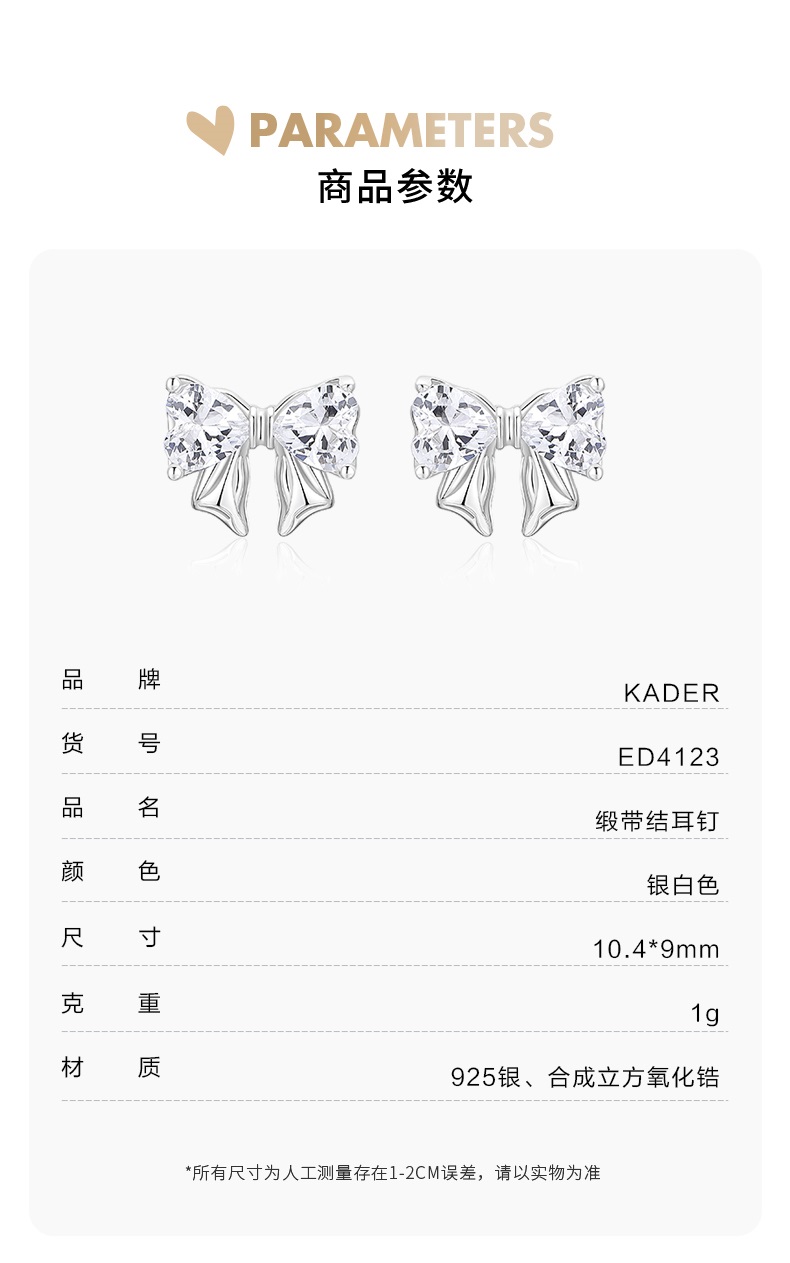 KADER卡蒂罗 缎带结耳钉 925银经典蝴蝶结造型设计甜美耳饰 璀璨闪耀甜美可爱配饰梦幻精致 送女生闺蜜礼物