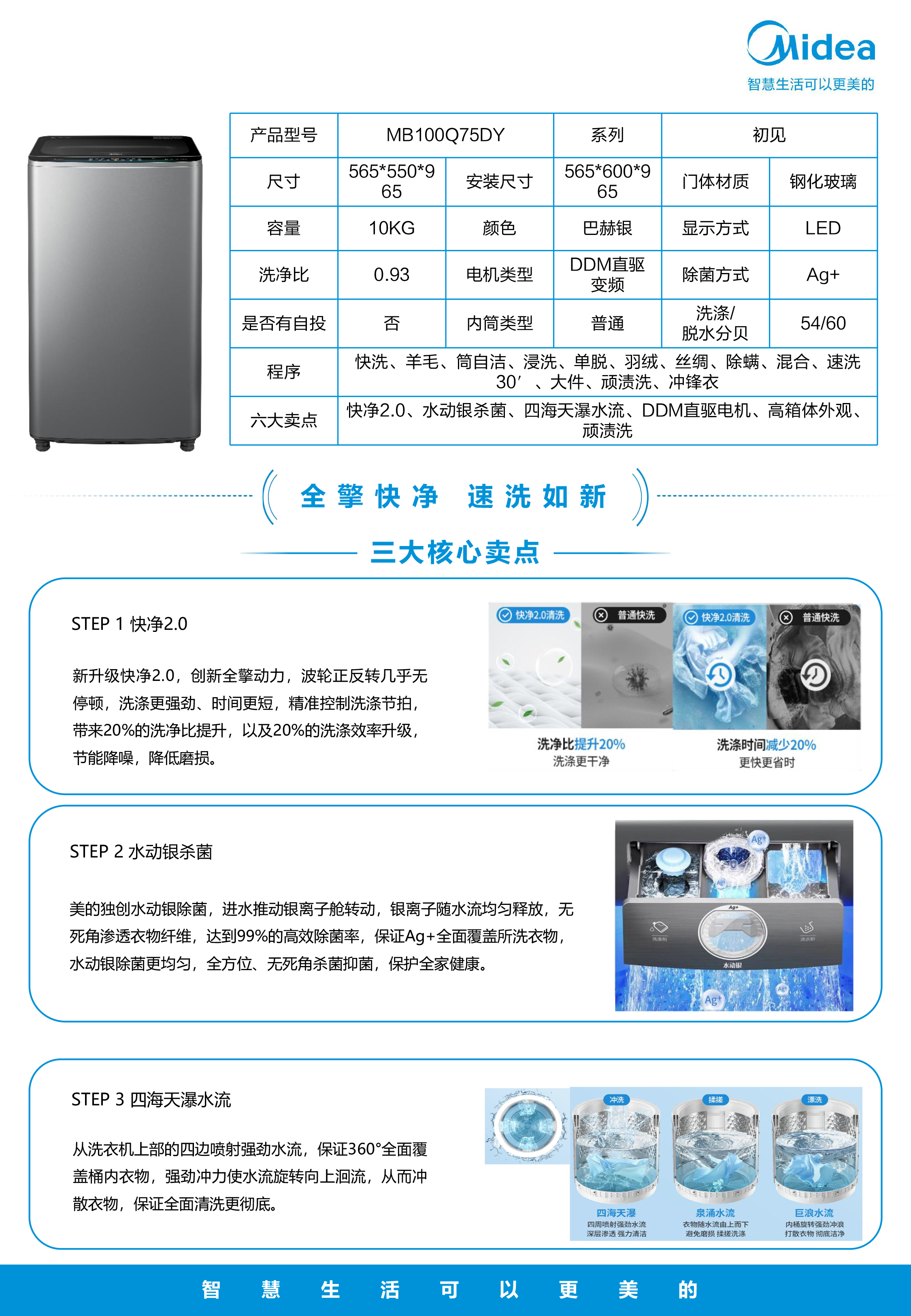 美的 10公斤 波轮洗衣机 MB100Q75DY