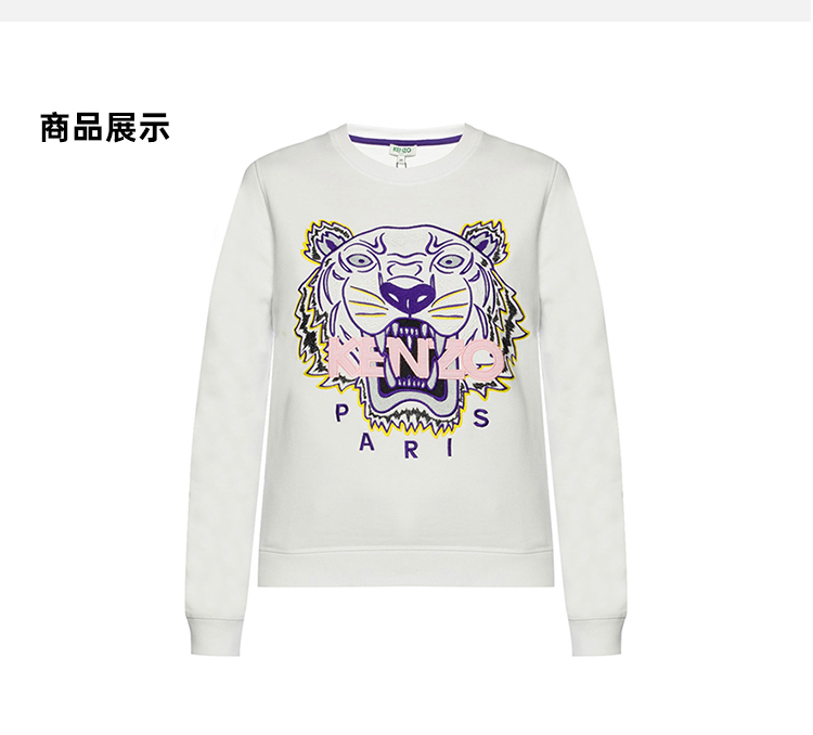 KENZO 高田贤三 女士棉质多色虎头标志圆领长袖卫衣 白色 F852 SW705 4XA 01