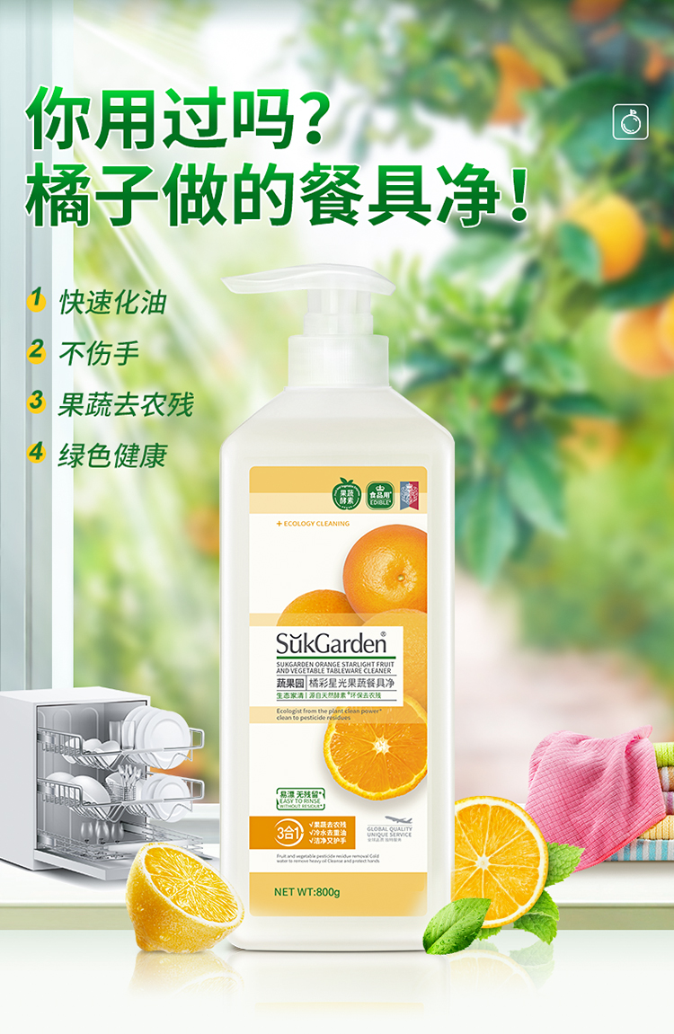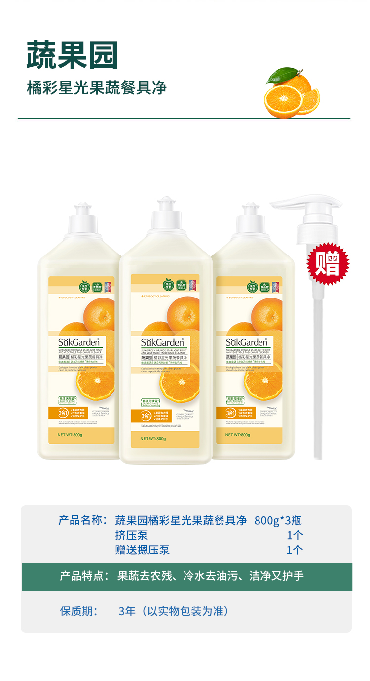 【餐具净组合】蔬果园橘采星光果蔬餐具净800g*3瓶