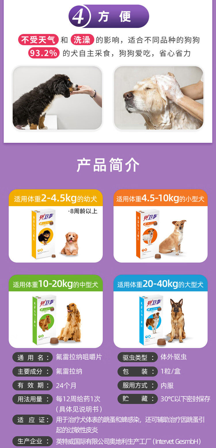 贝卫多狗狗驱虫药体外驱虫口服外驱跳蚤蜱虫幼犬小中大型犬狗专用