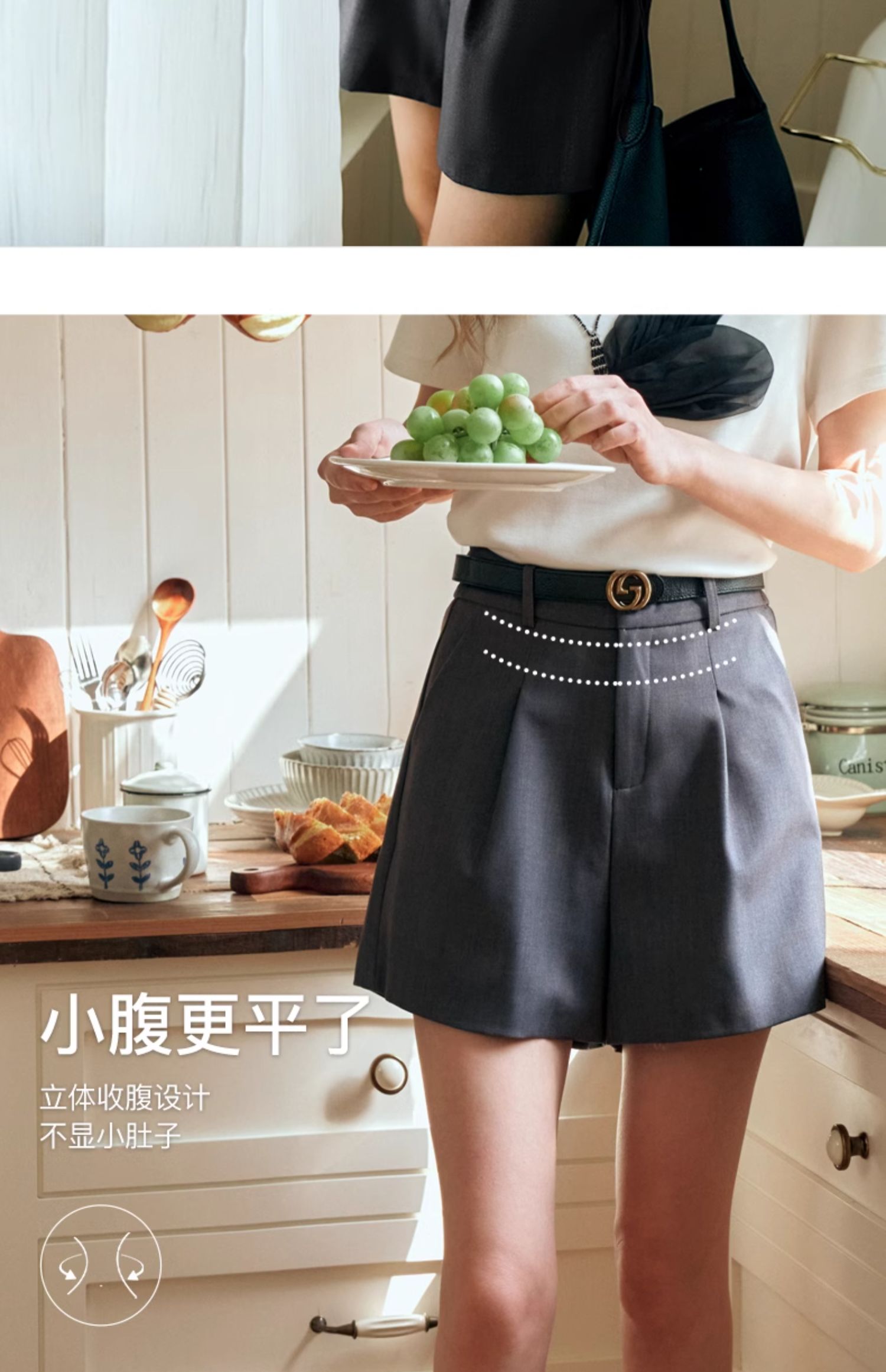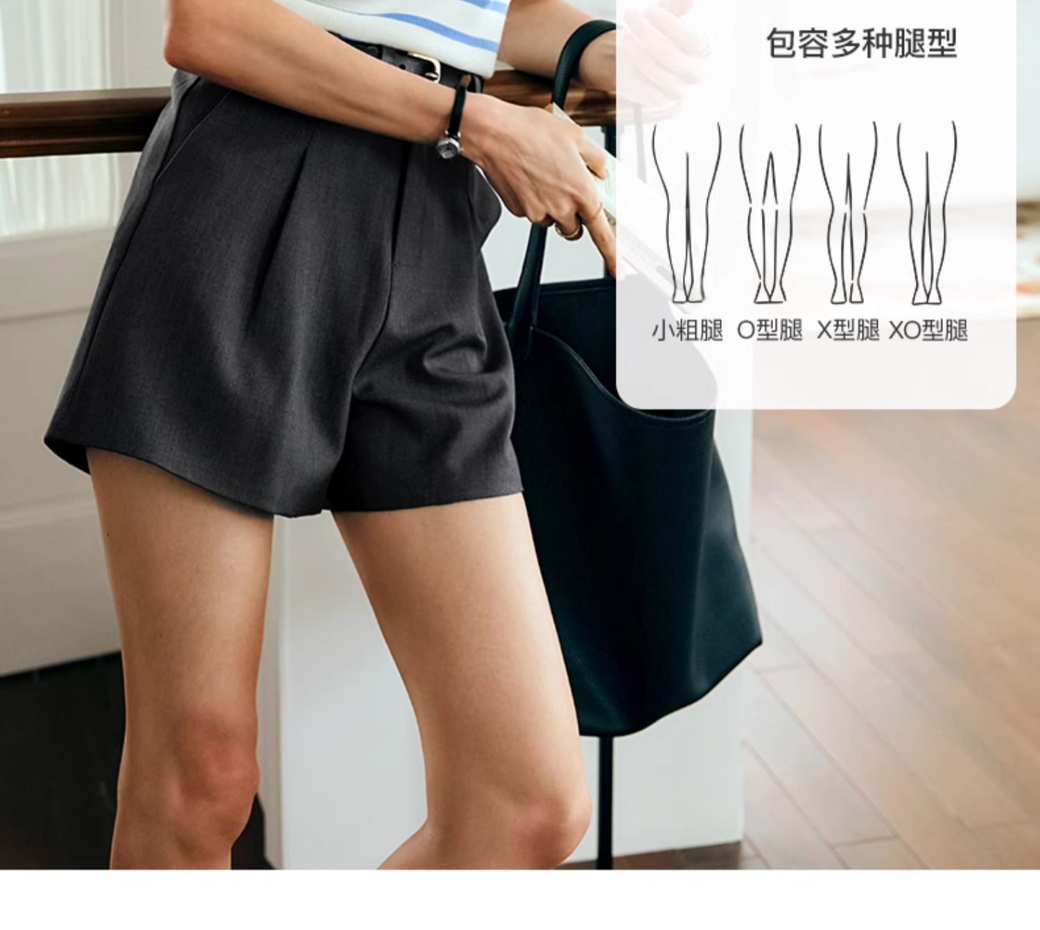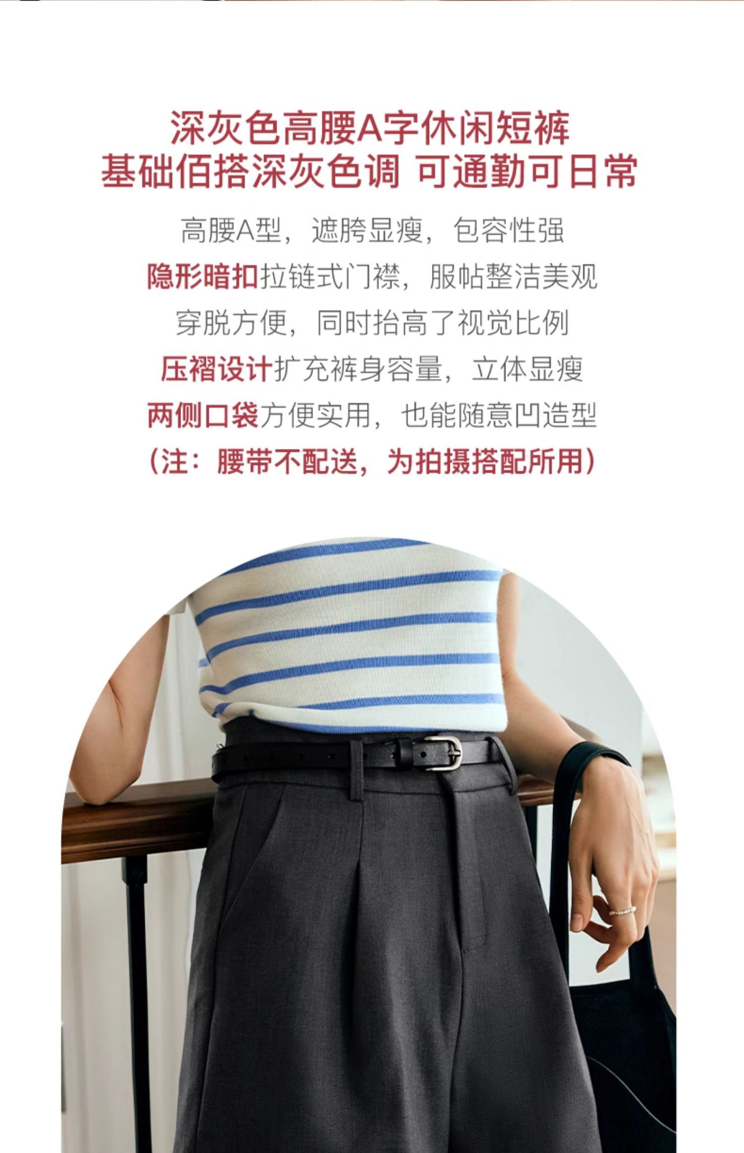 OLrain欧芮儿深灰色休闲裤女夏季2024年新款小个子高腰通勤短裤