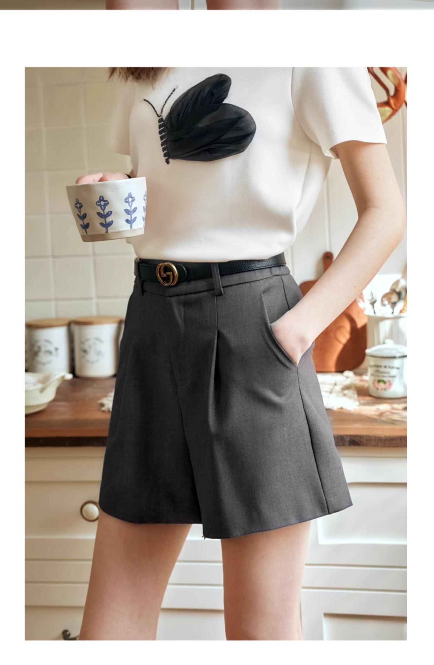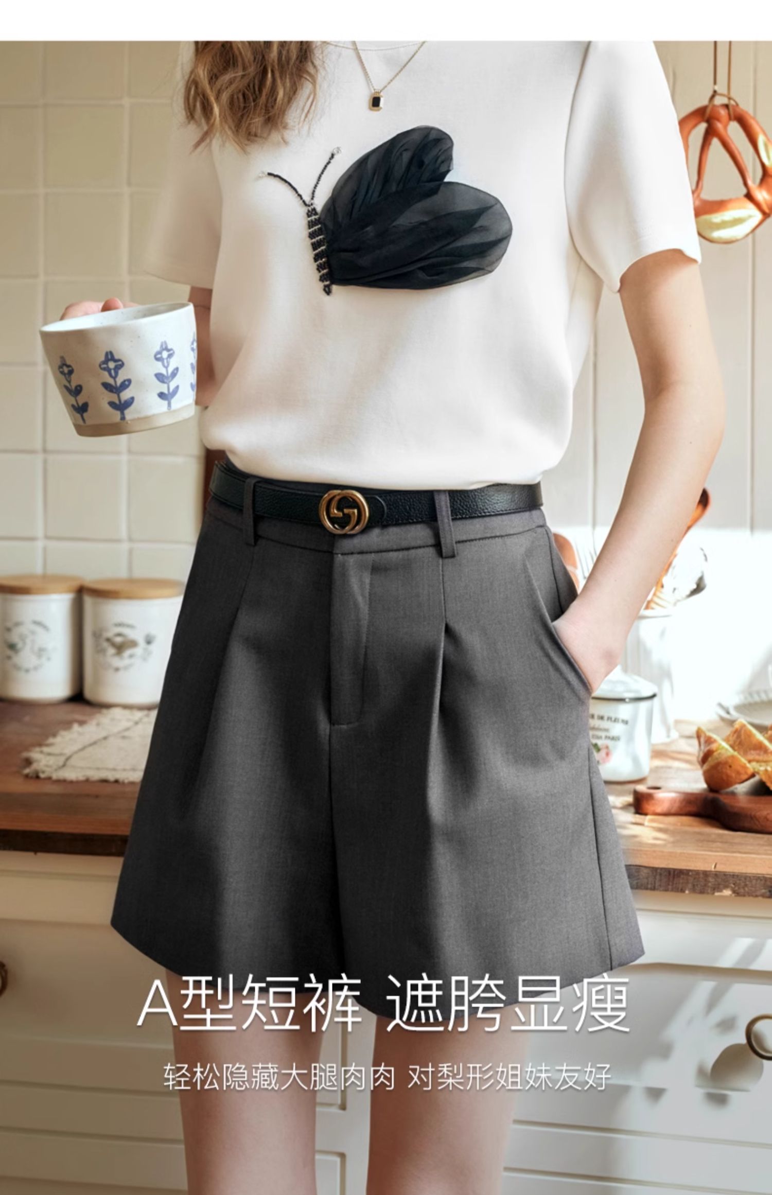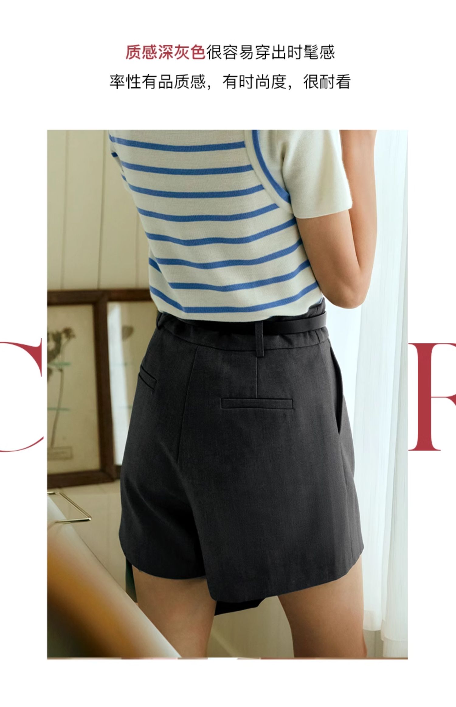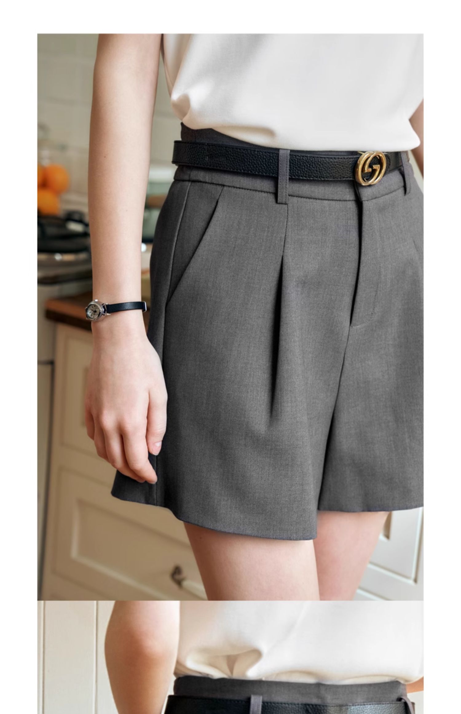 OLrain欧芮儿深灰色休闲裤女夏季2024年新款小个子高腰通勤短裤
