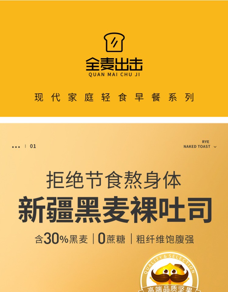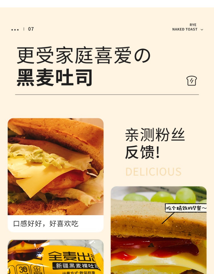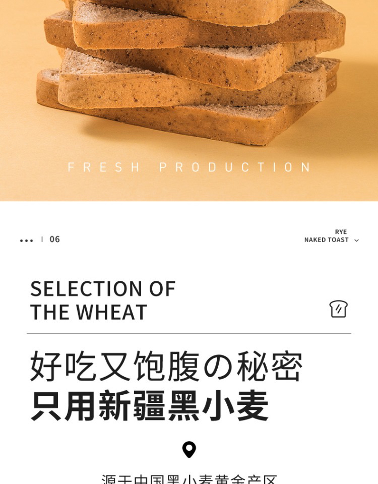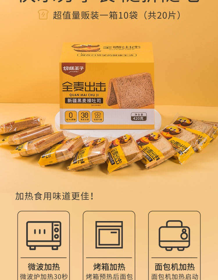 9.9元!切糕王子 新疆黑麦吐司 全麦面包,无蔗糖,麦香十足 加厚款 420g/箱,最新日期