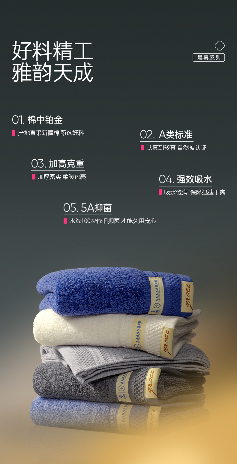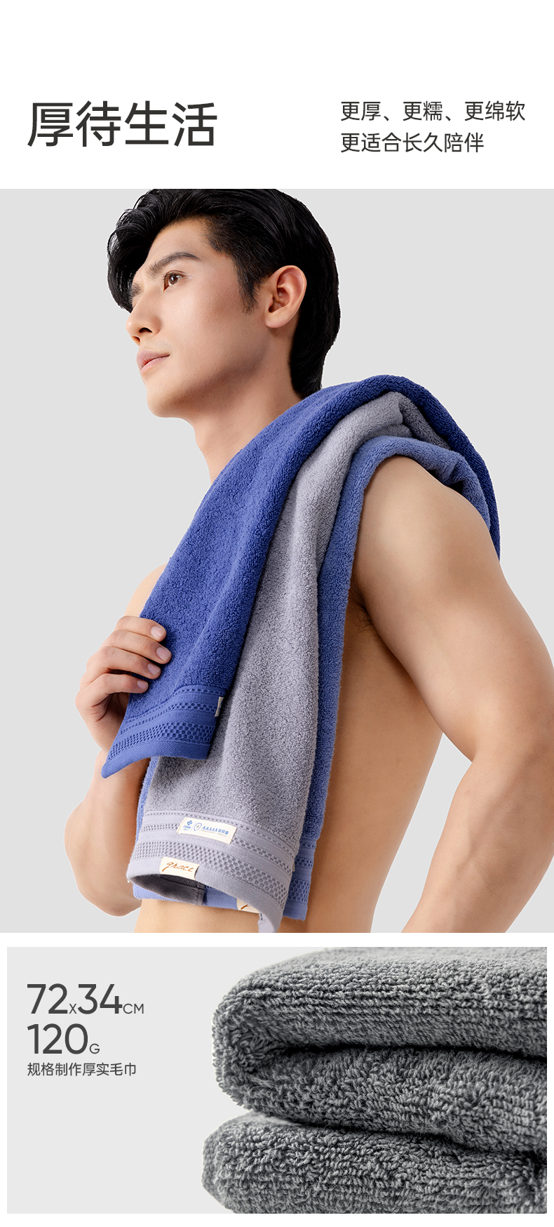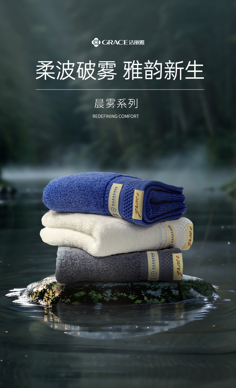 洁丽雅晨雾系列毛巾新疆棉全棉加厚柔软洗脸家用吸水舒适洗澡男生