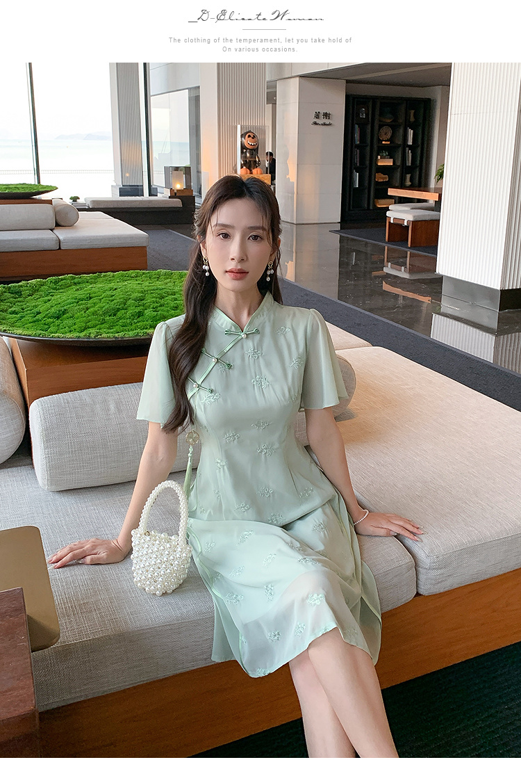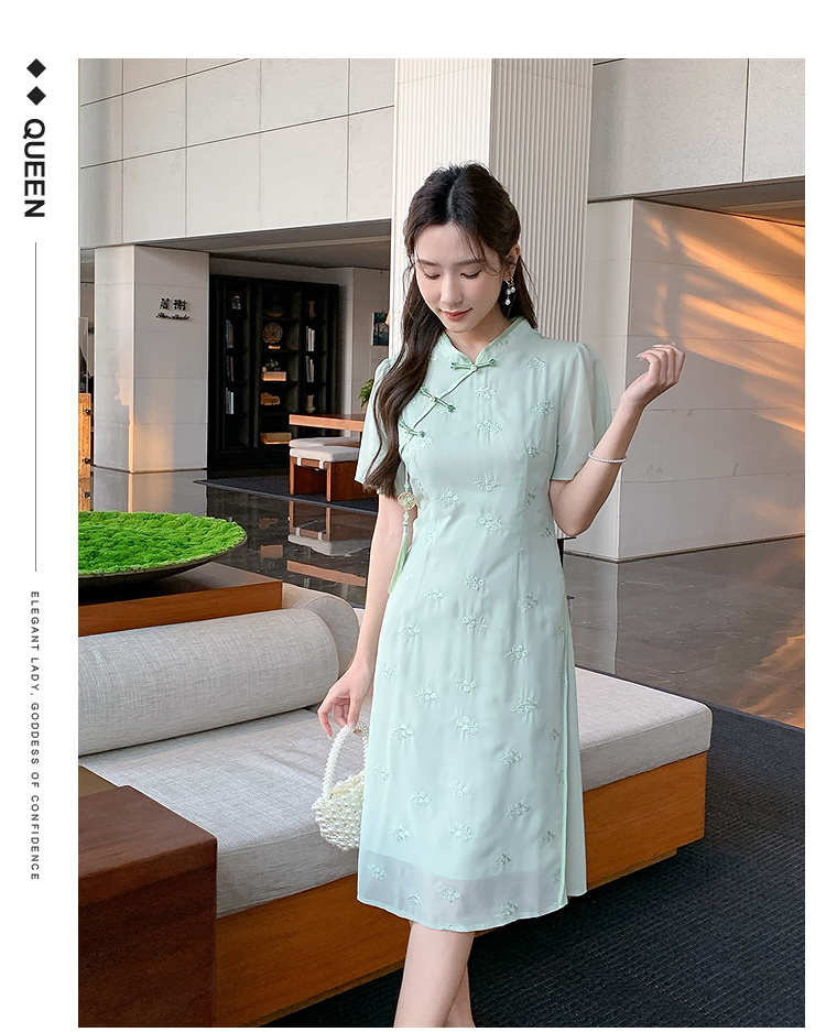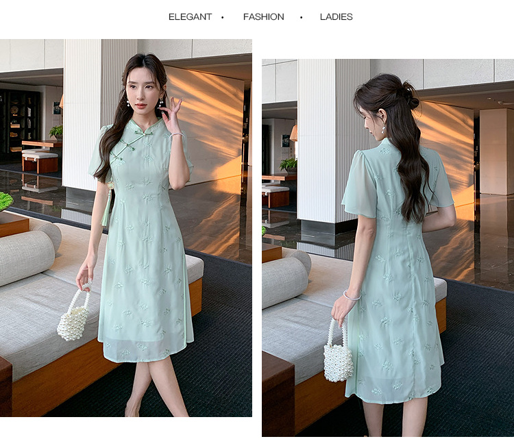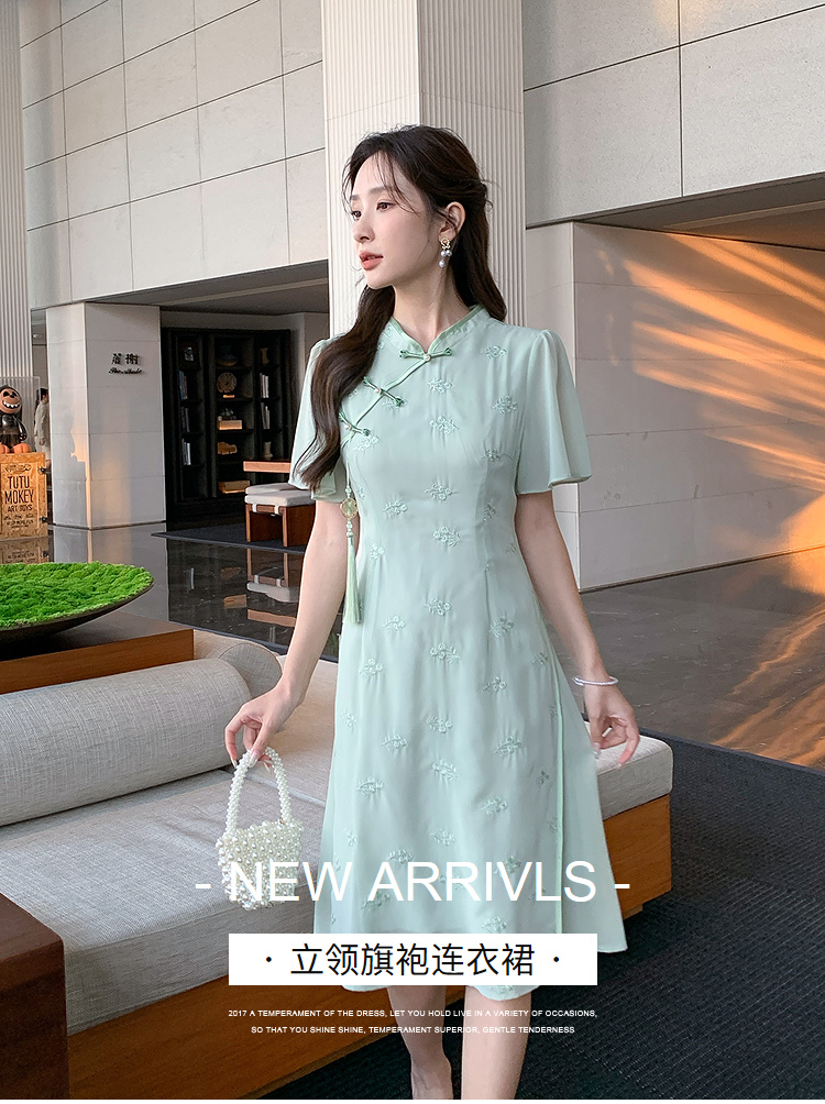【清仓超15天不保价】奢姿大码女装2025夏季新款胖妹妹气质立领改良旗袍轻奢休闲连衣裙9952890367【1】