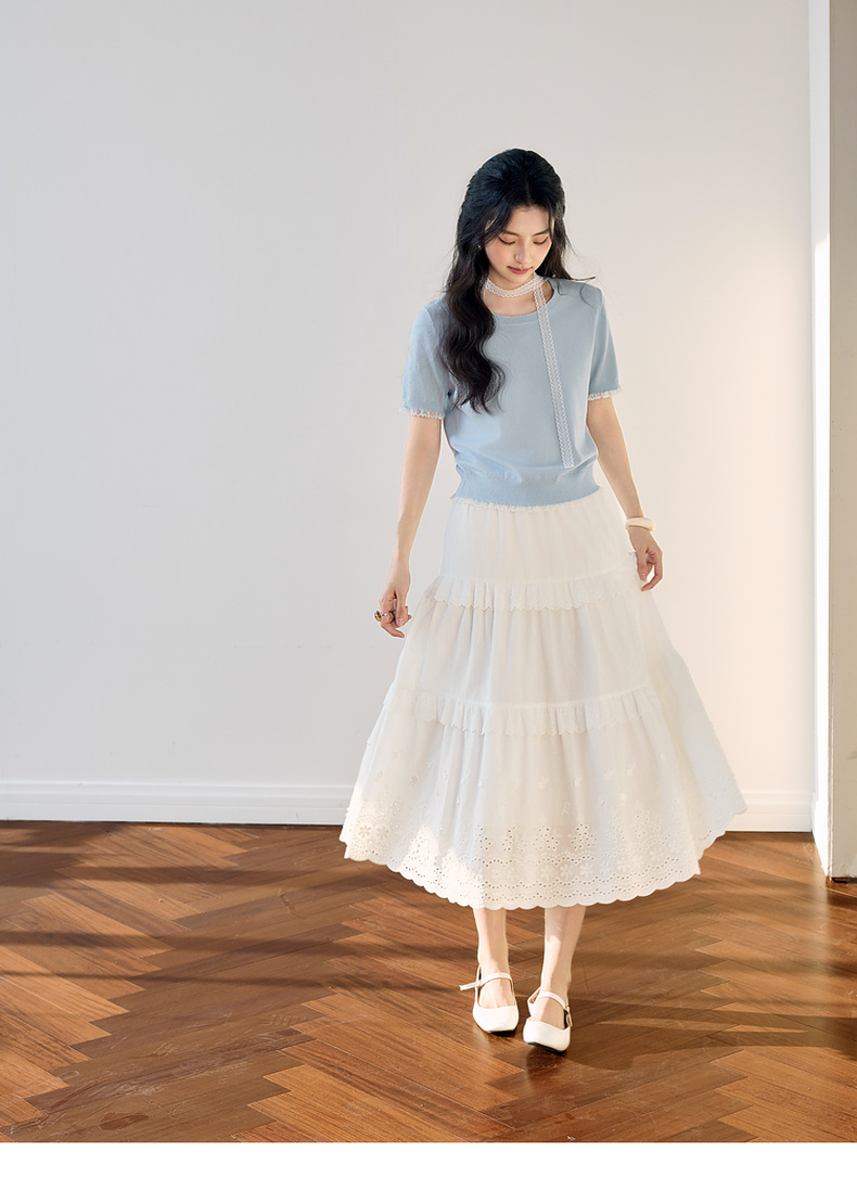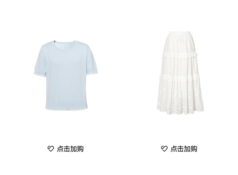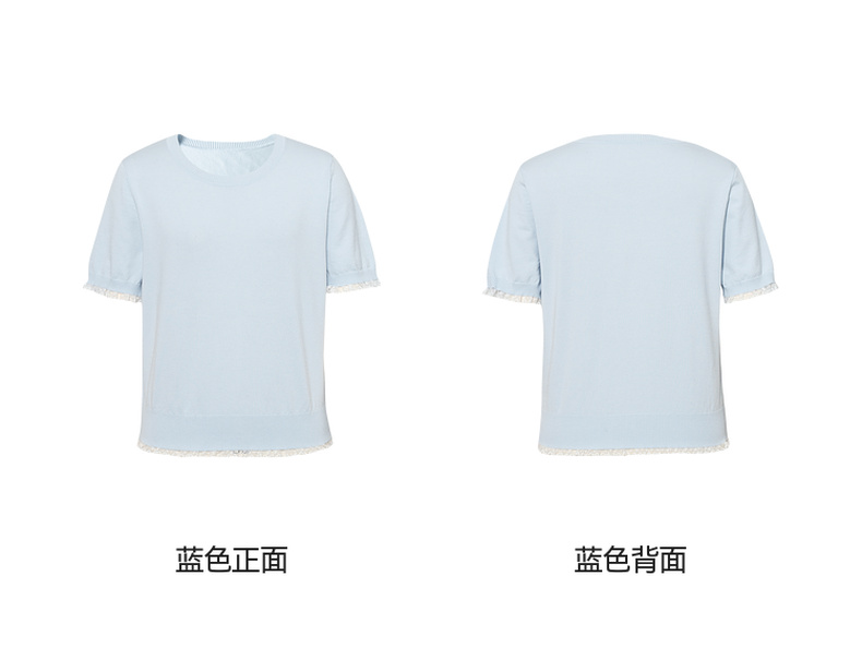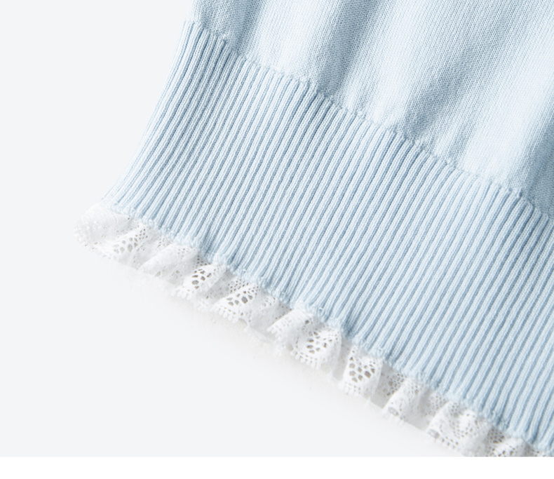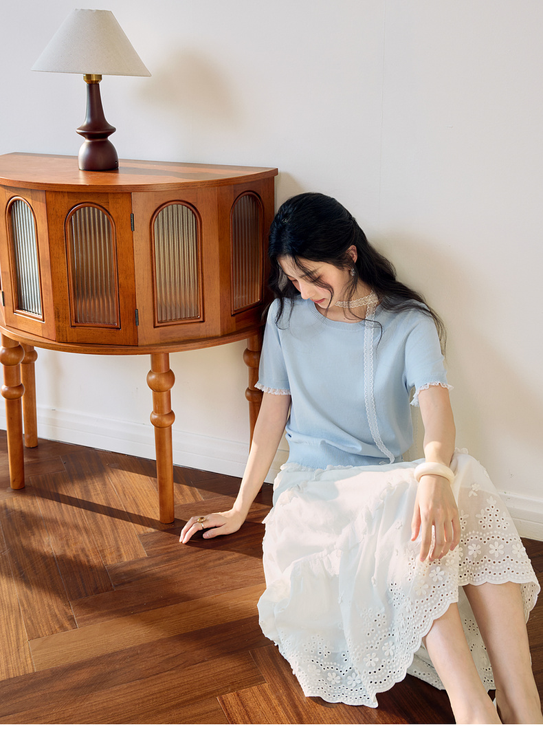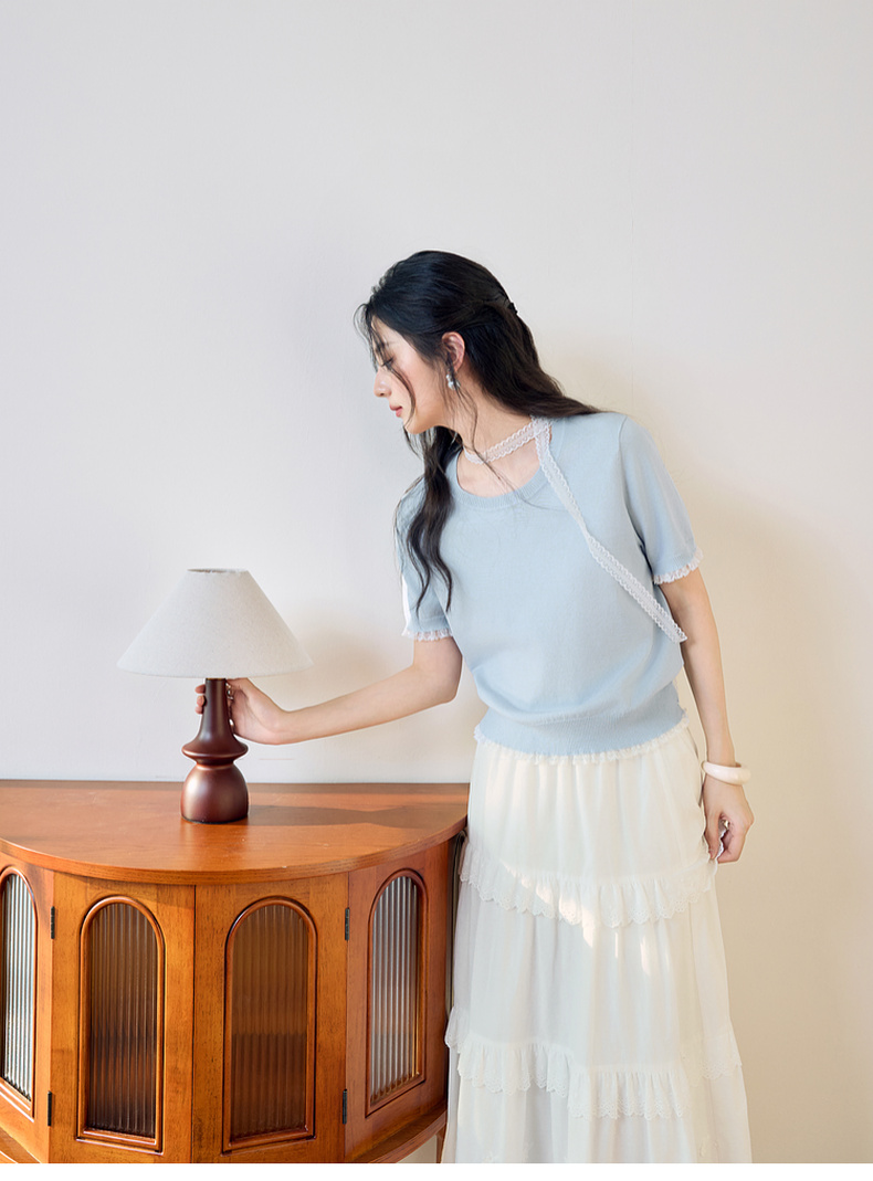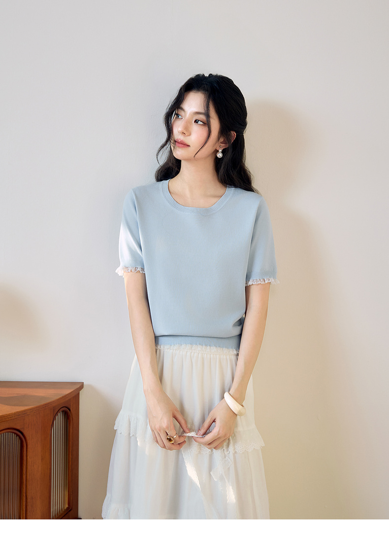 【严选】诗凡黎圆领花边针织衫2025夏新款时尚设计感温柔漂亮套头衫女7G4231881