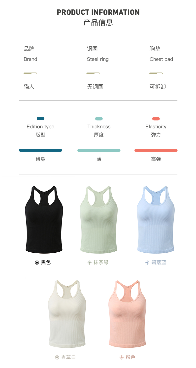 Leorrey乐拉运动瑜伽背心女带胸垫运动上衣工字跑步健身服外穿罩衫训练无袖春