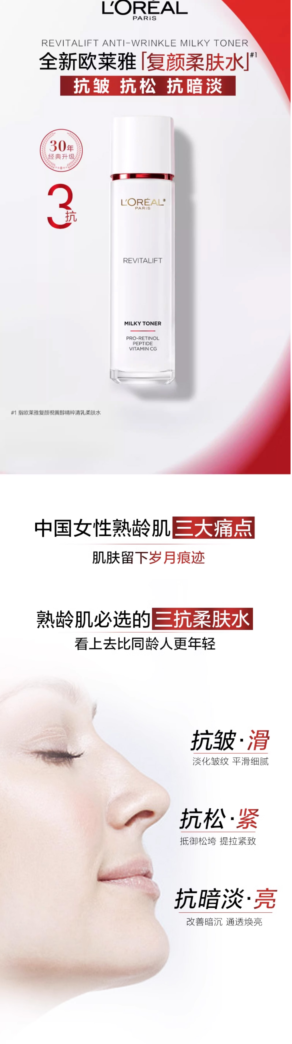 欧莱雅L’OREAL 复颜视黄醇精粹清乳柔肤水130ml