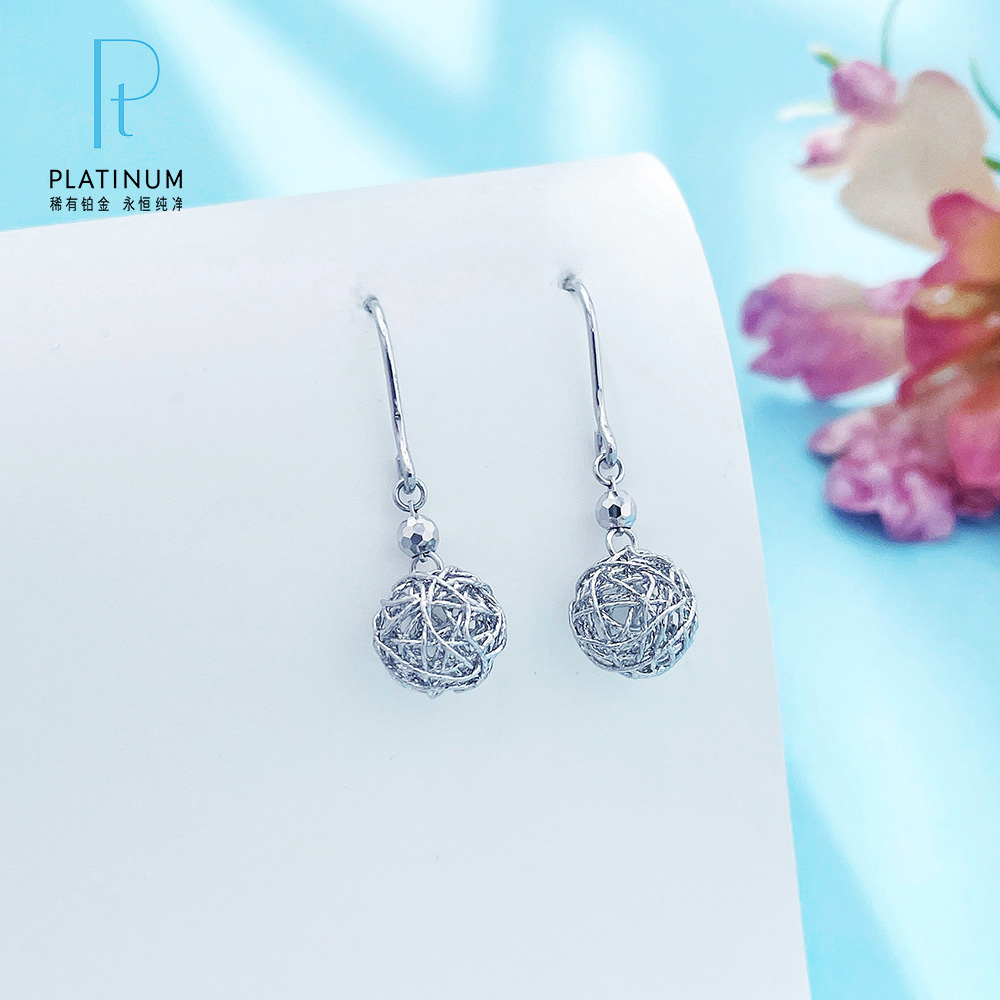 【限时8.8折】【线上铂金馆】PT950 #绕线 【国际铂金协会 精品】铂金镂空花丝玲珑绣球耳饰耳吊耳钩(BES00258)预售产品下单后不退款不退货不换货不补差价)