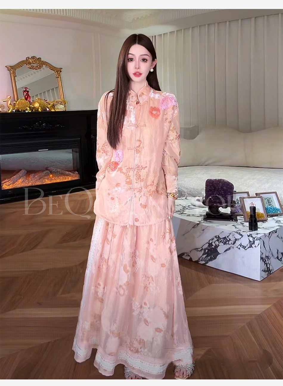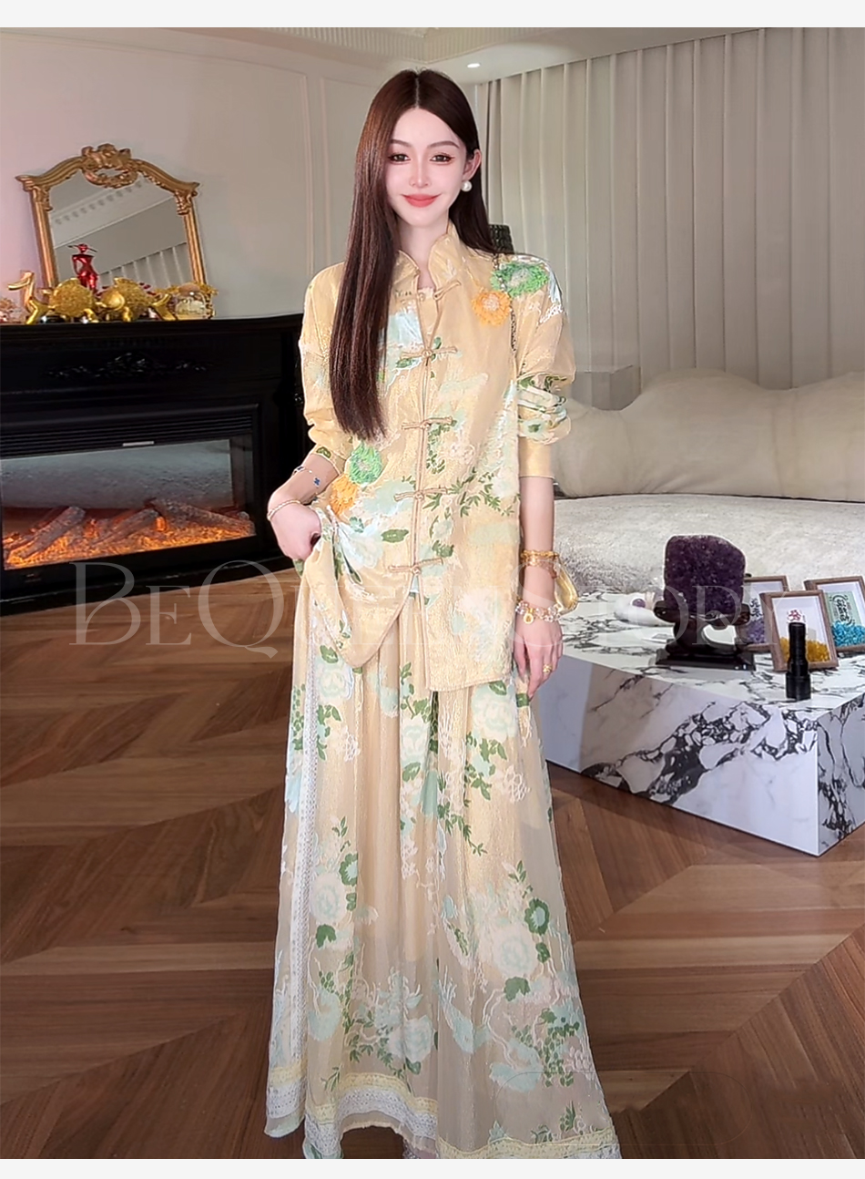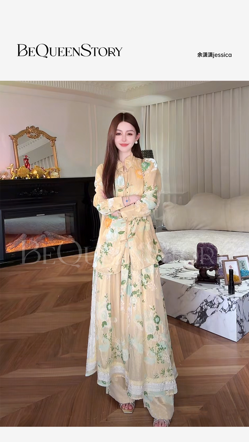 余潇潇【锦绣芳华】时尚高级感桑蚕丝新中式国风外套&休闲裤&半身裙