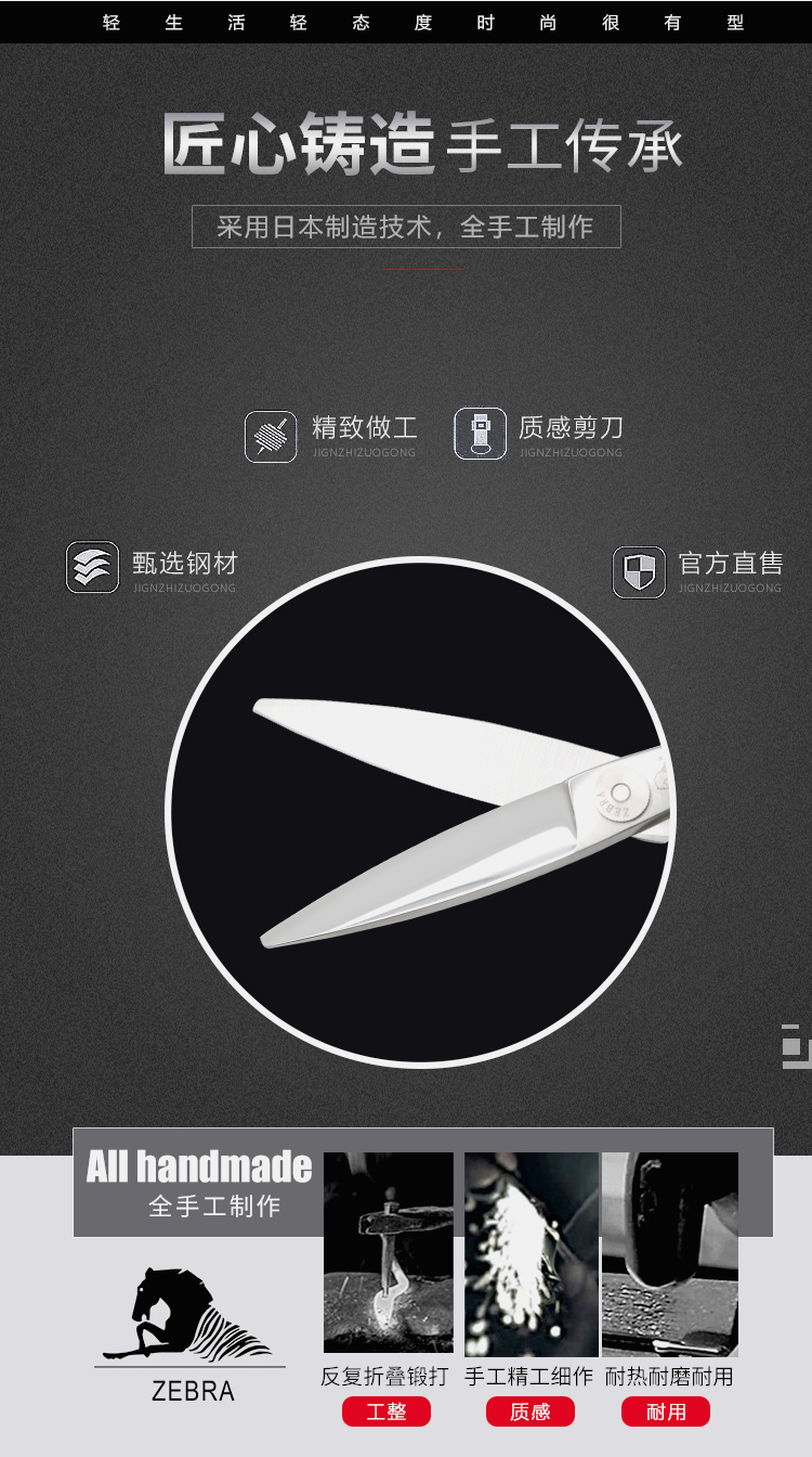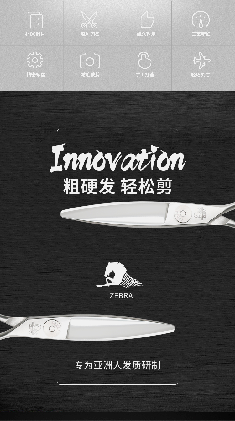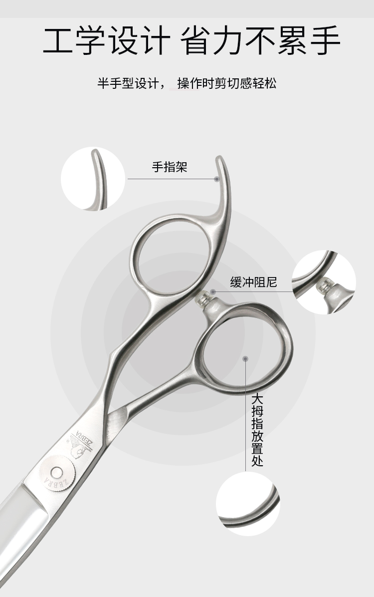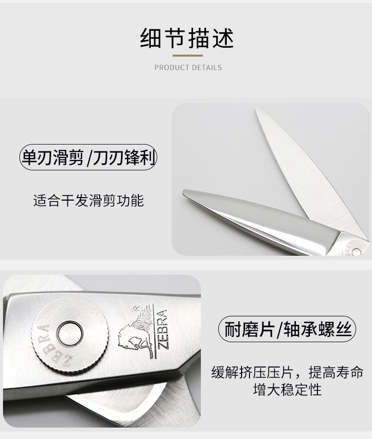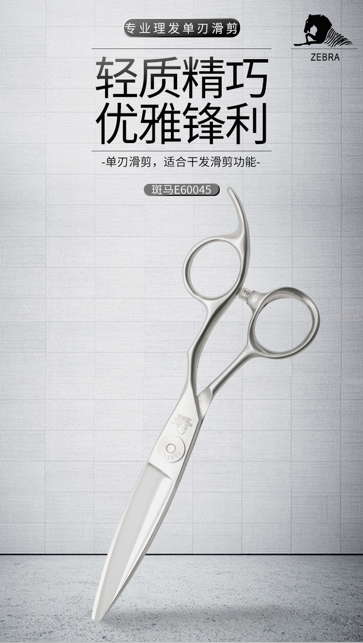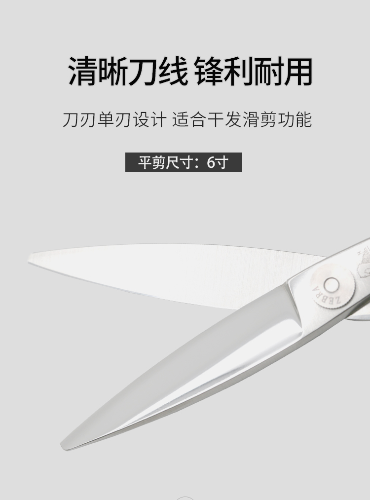 ZEBRA斑马 剪刀 E60045 专业滑剪 锋利/ 单刃/日式/柳叶剪滑刀/胖胖/ 纹理/6寸