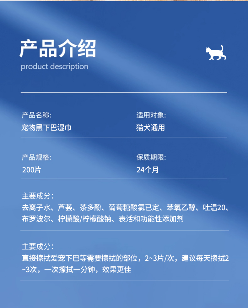 道力其宠物黑下巴湿巾200片狗狗下颚清洁护理湿巾批发