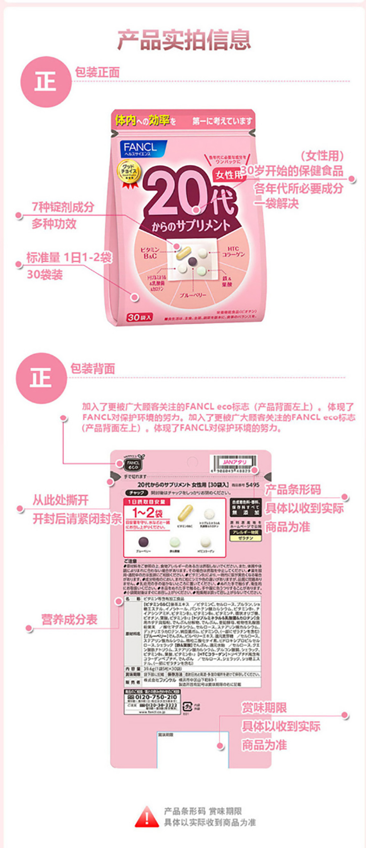 芳珂FANCL营养素女性20代营养包 30日量 复合营养素矿物质