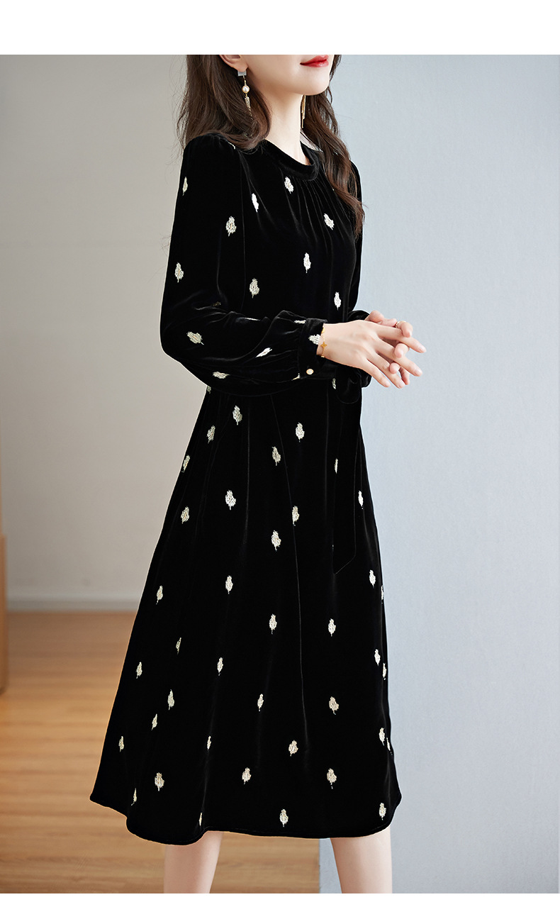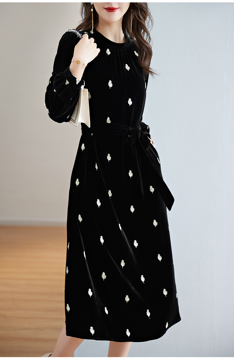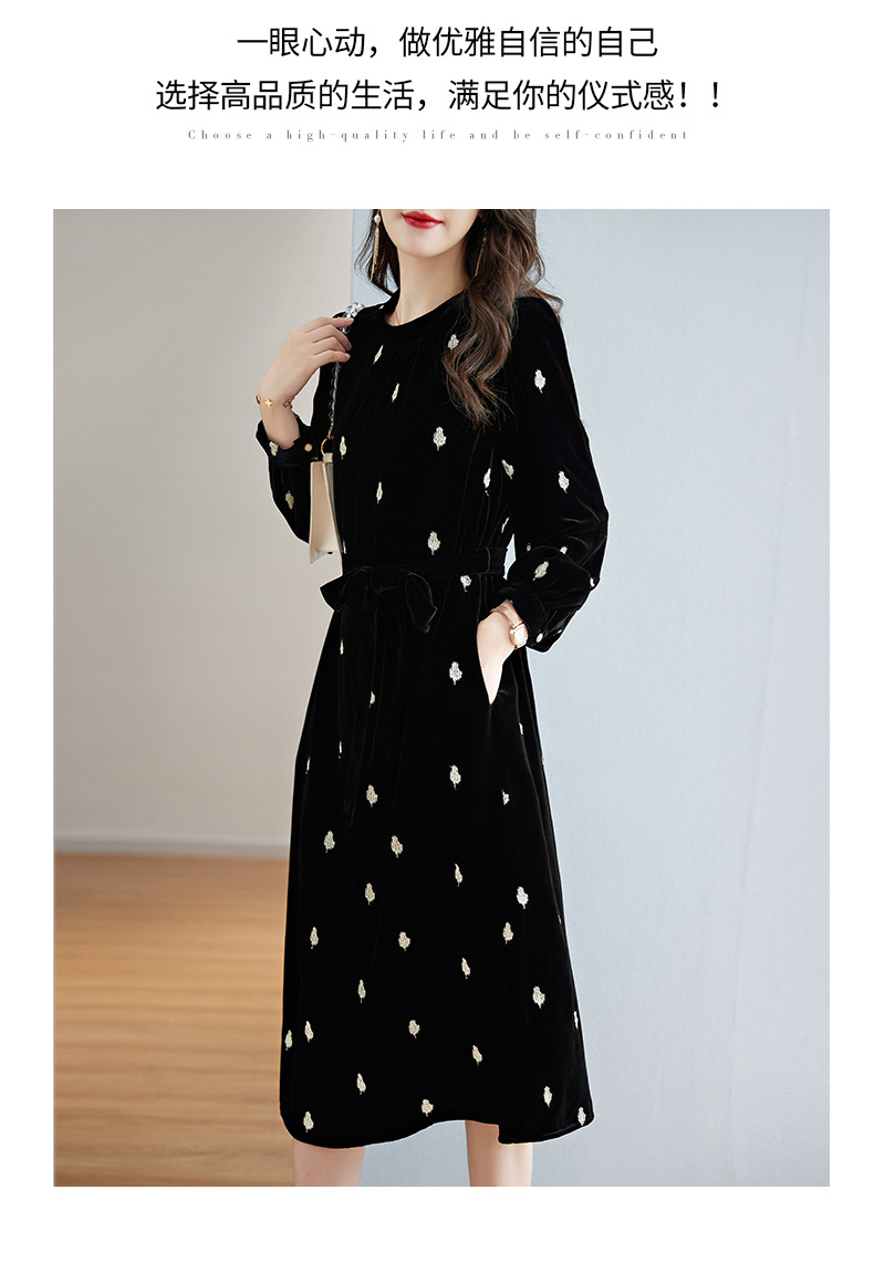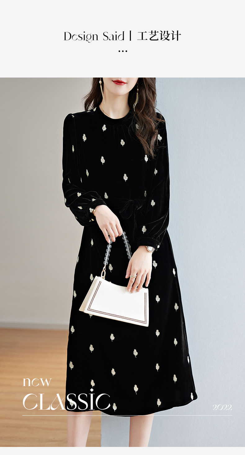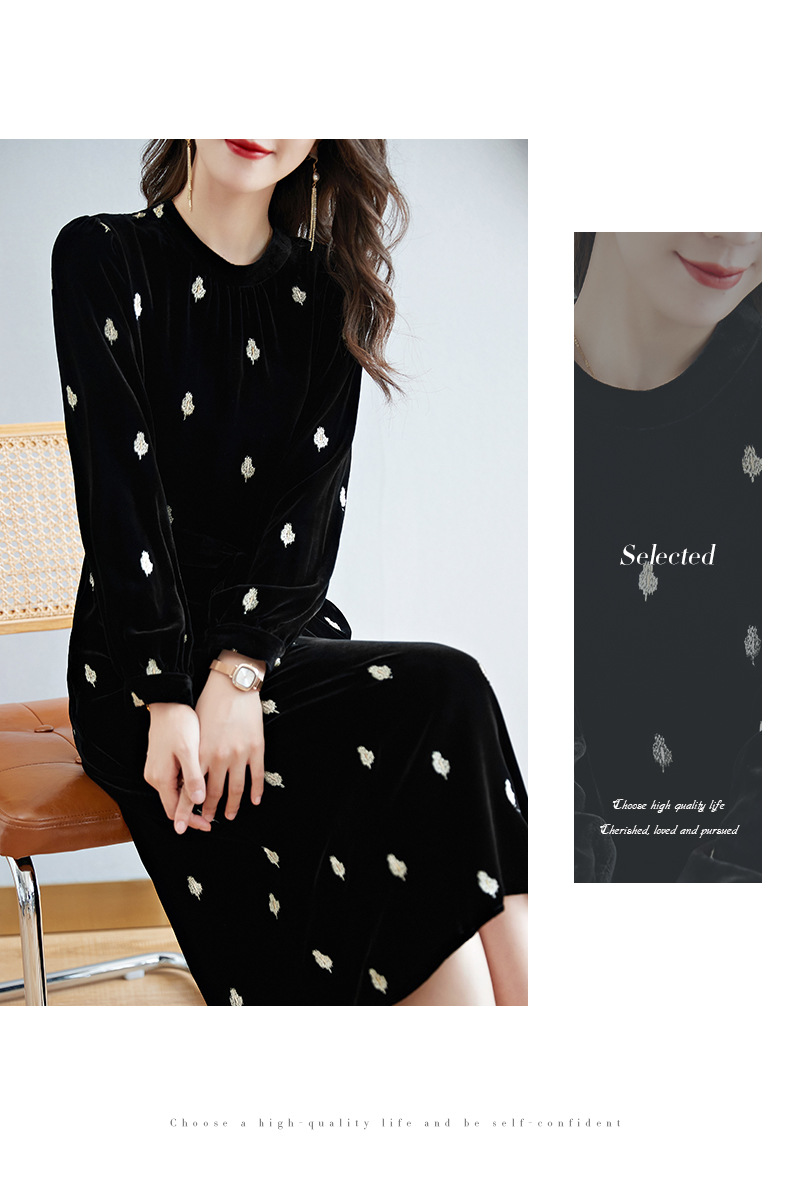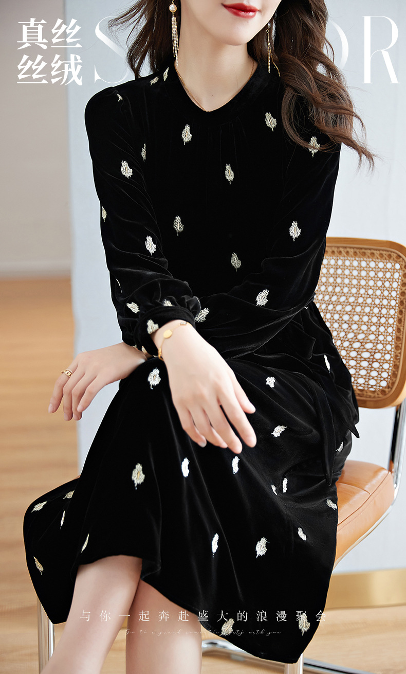 高贵洋气,新款中年妈妈装气质收腰真丝长袖打底裙冬丝绒连衣裙SM-82298723