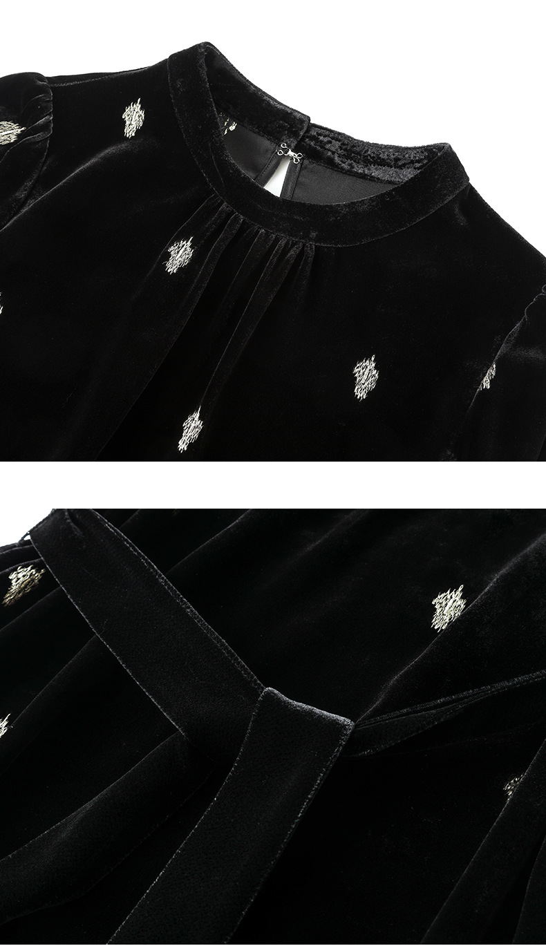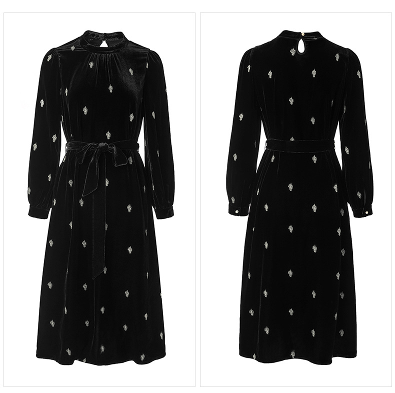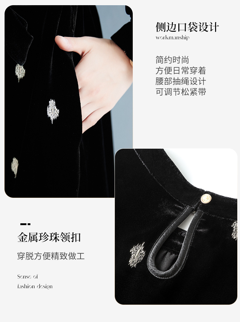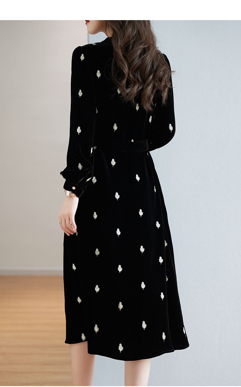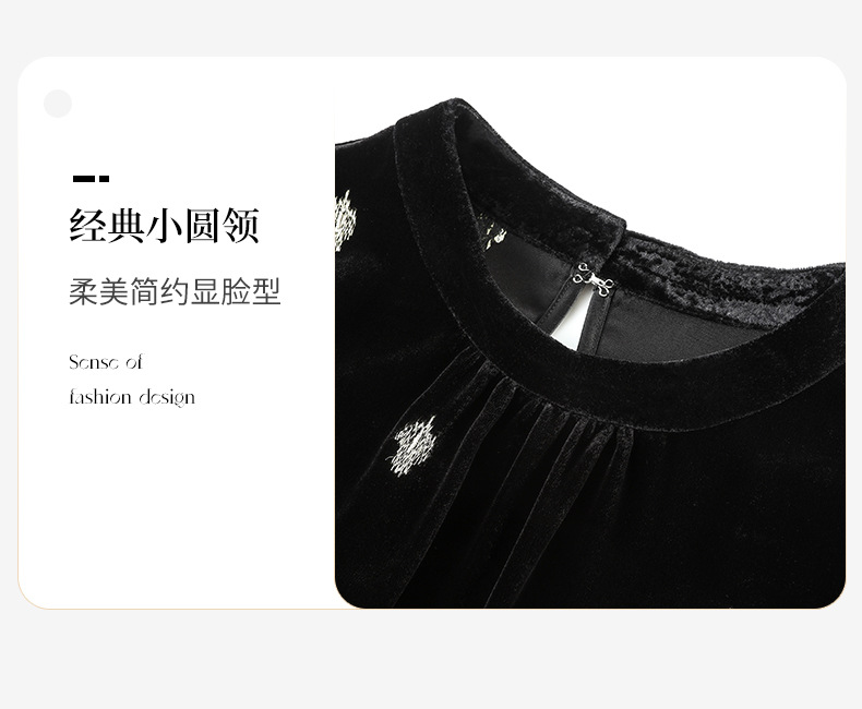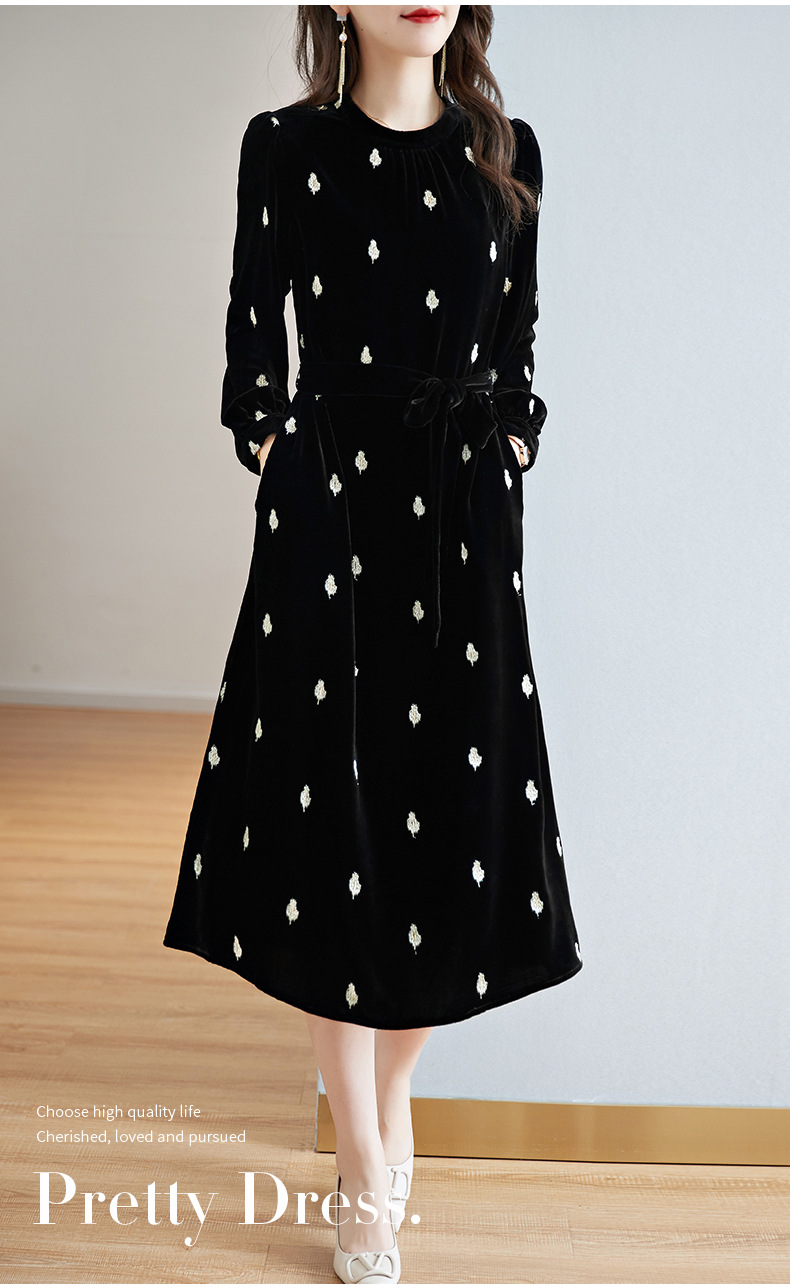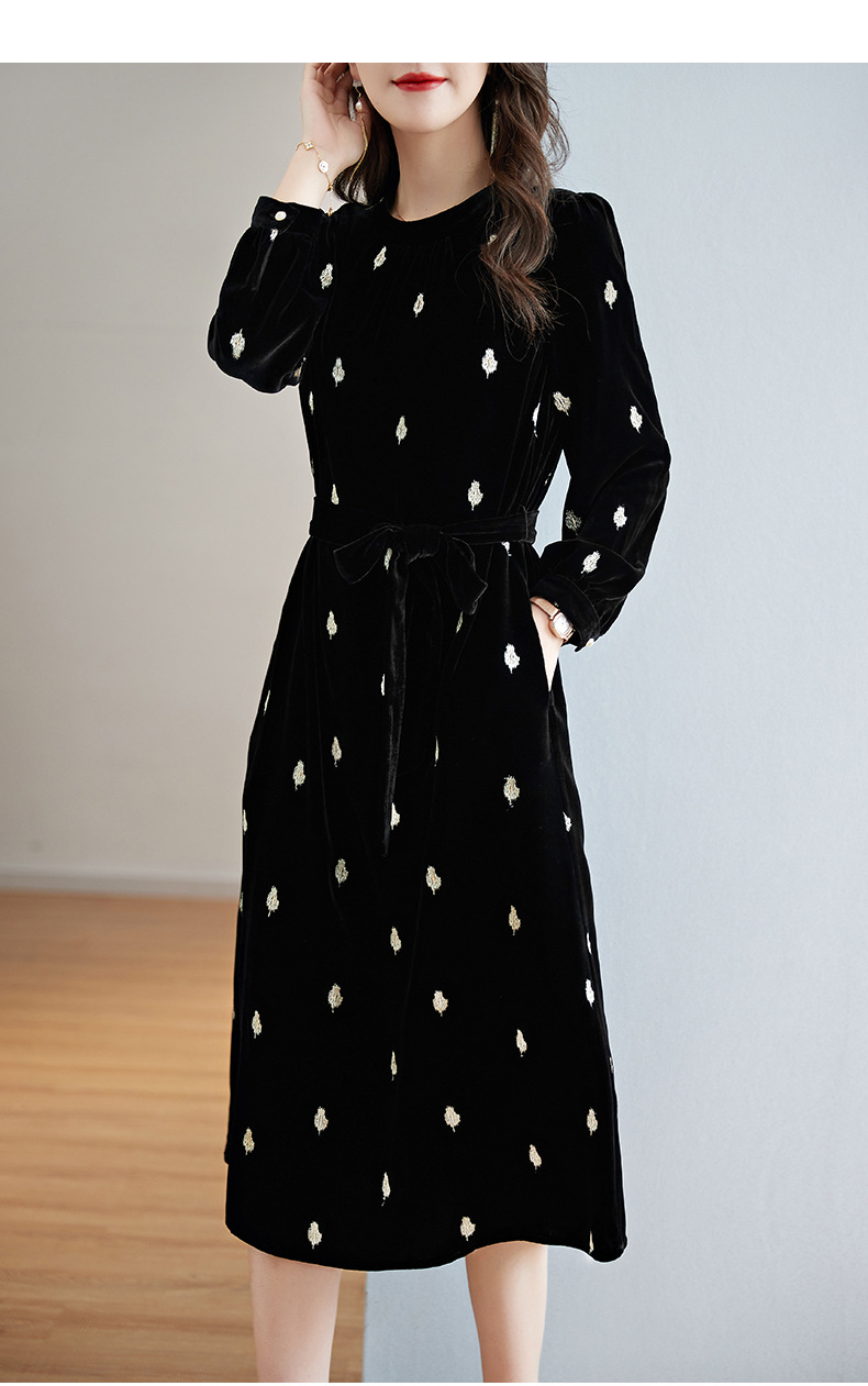 高贵洋气,新款中年妈妈装气质收腰真丝长袖打底裙冬丝绒连衣裙SM-82298723