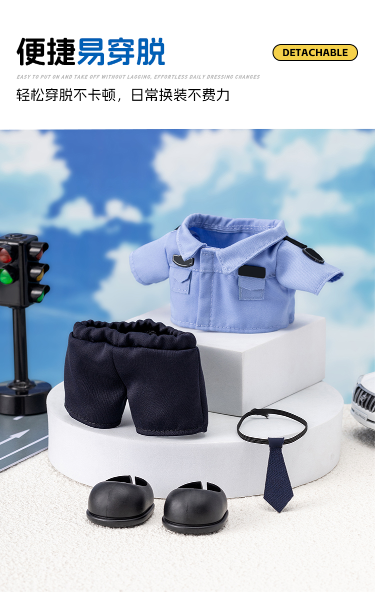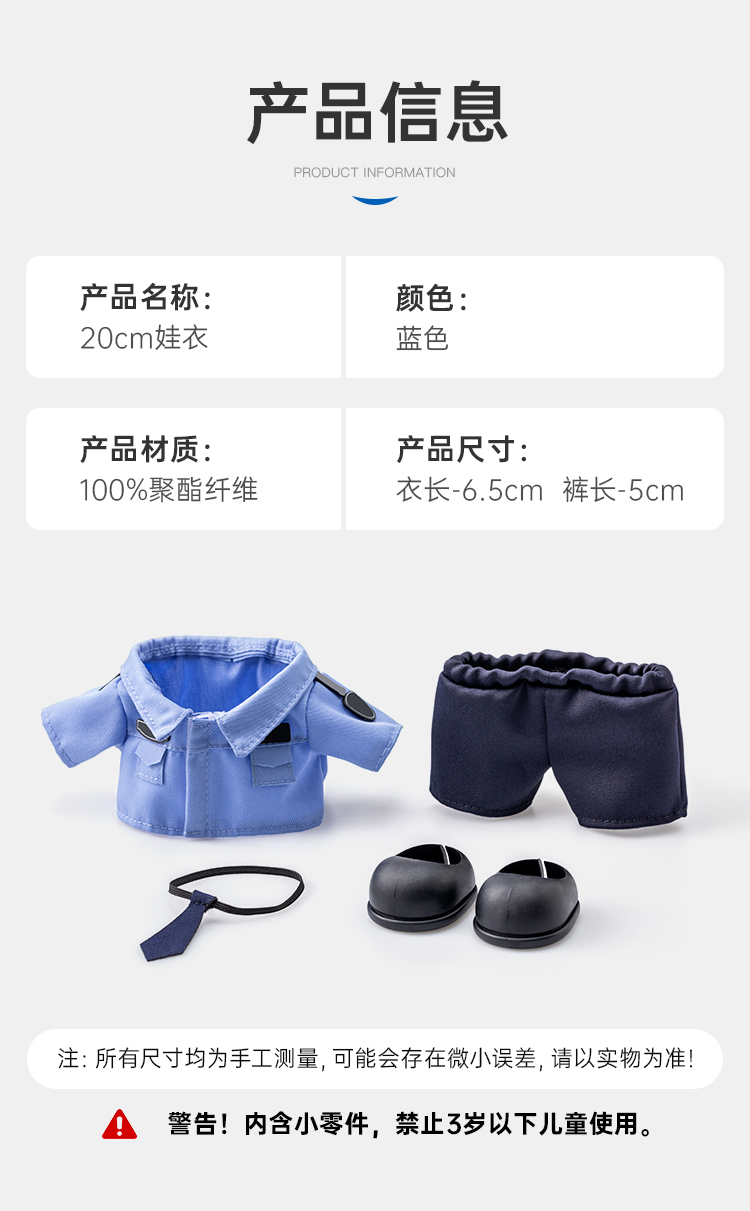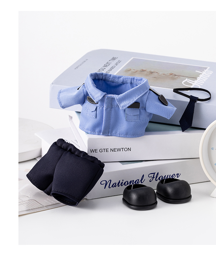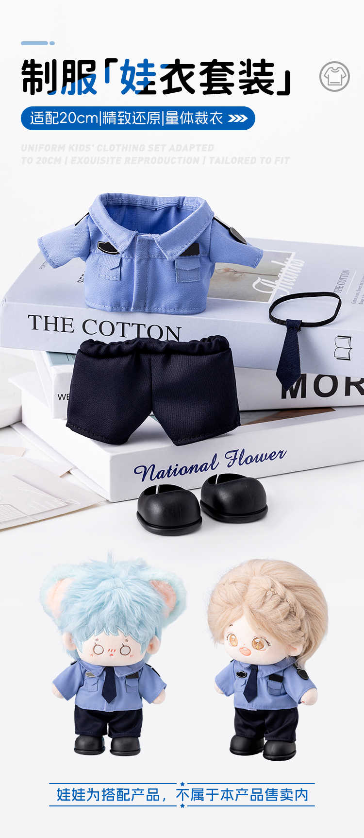 【20cm娃衣两件套】适用20cm棉娃创意毛绒玩偶衣服配件可穿脱蓝衬制服套装(不卖玩偶)