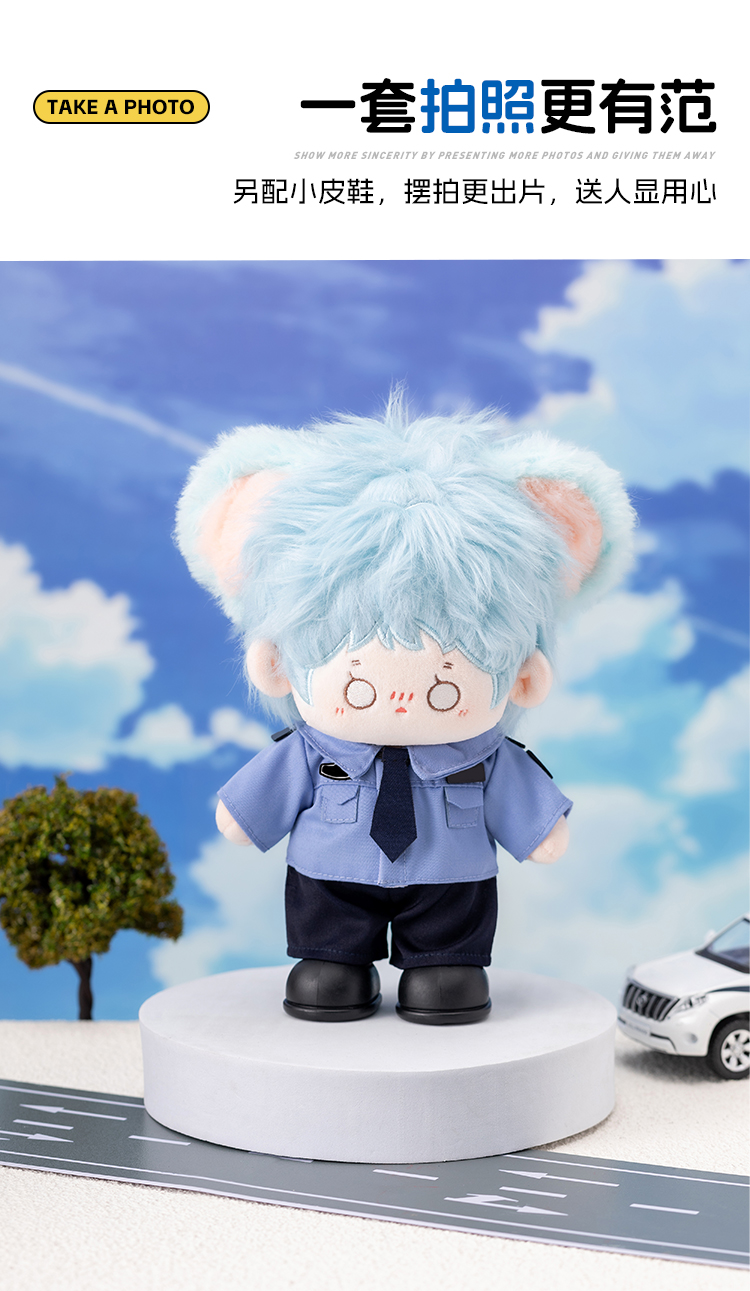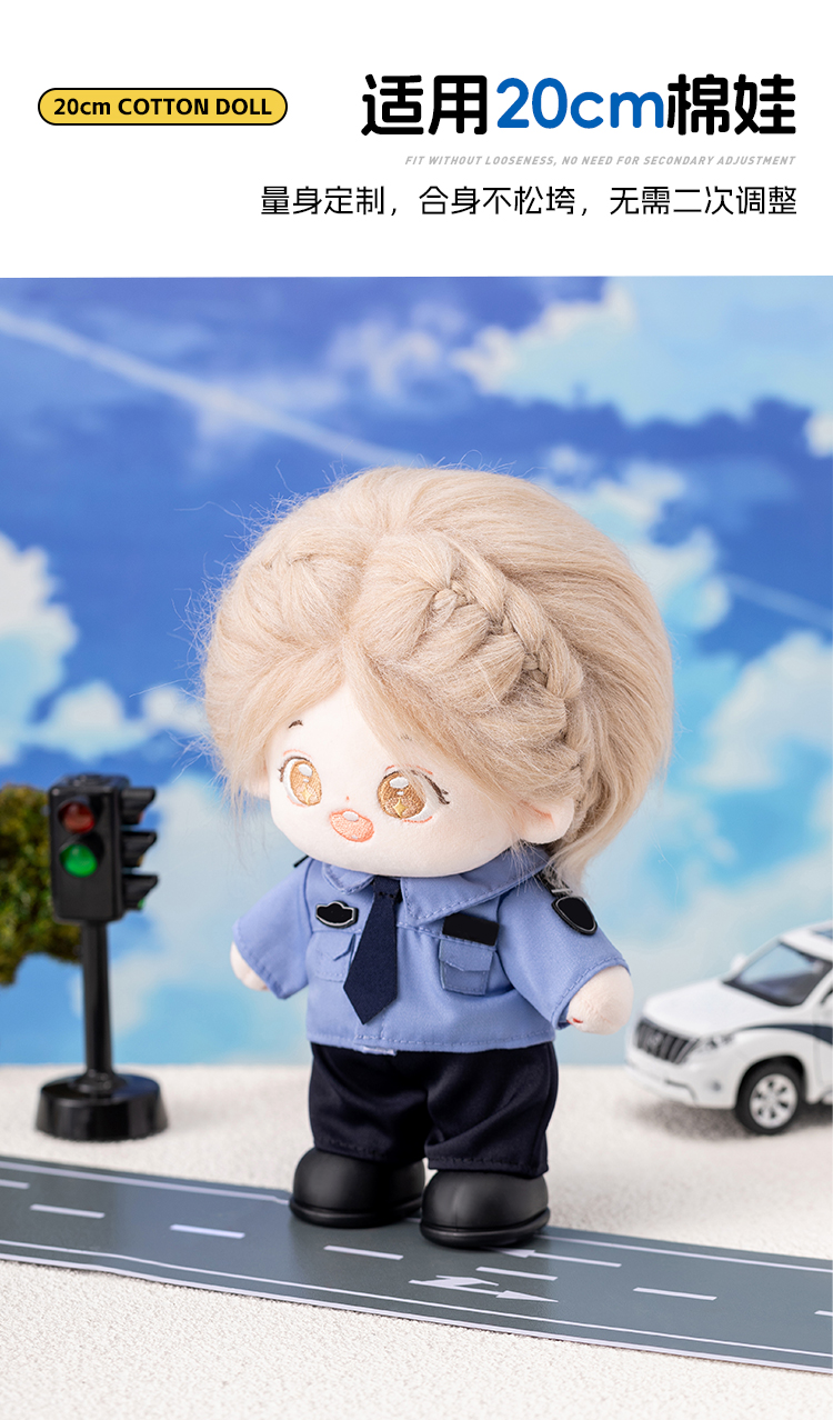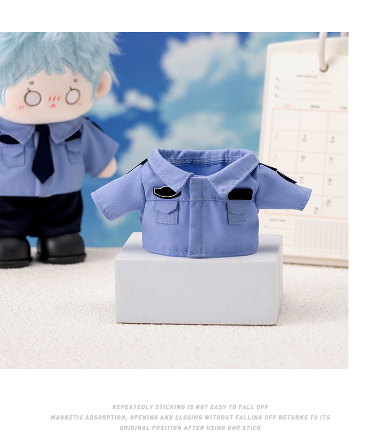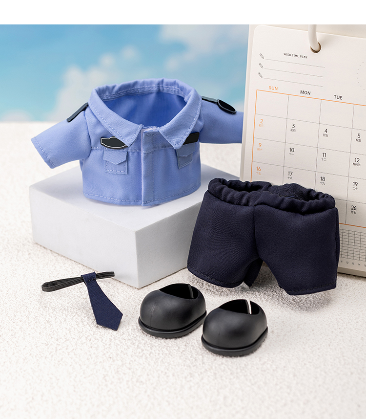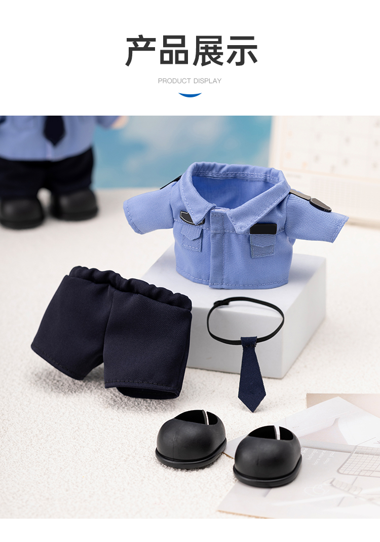 【20cm娃衣两件套】适用20cm棉娃创意毛绒玩偶衣服配件可穿脱蓝衬制服套装(不卖玩偶)