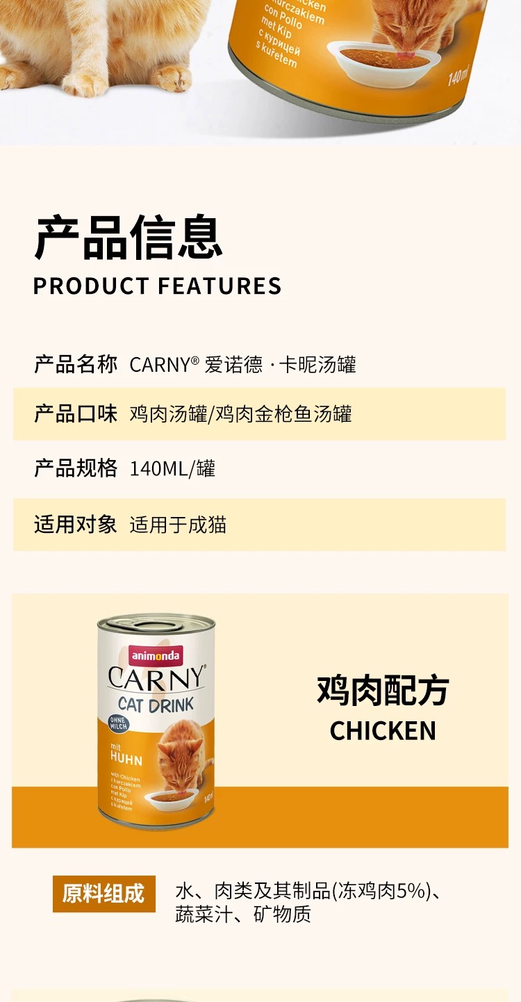 德国animonda爱诺德卡昵补水汤罐 猫咪零食罐头 泰国原装进口 140ml/罐