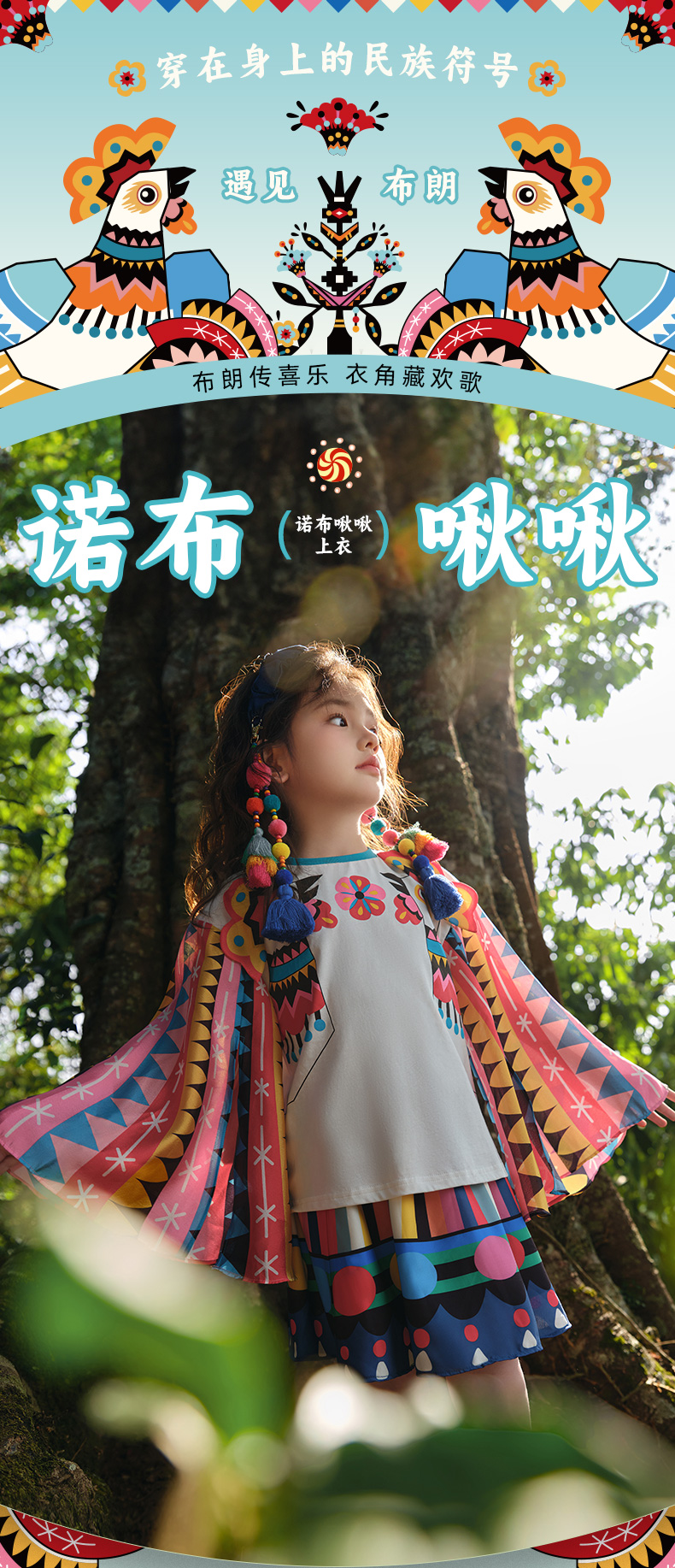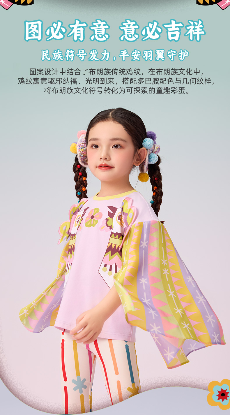 年衣童装女童短袖T恤2025年夏季新款儿童原创民族诺布啾啾长袖上衣