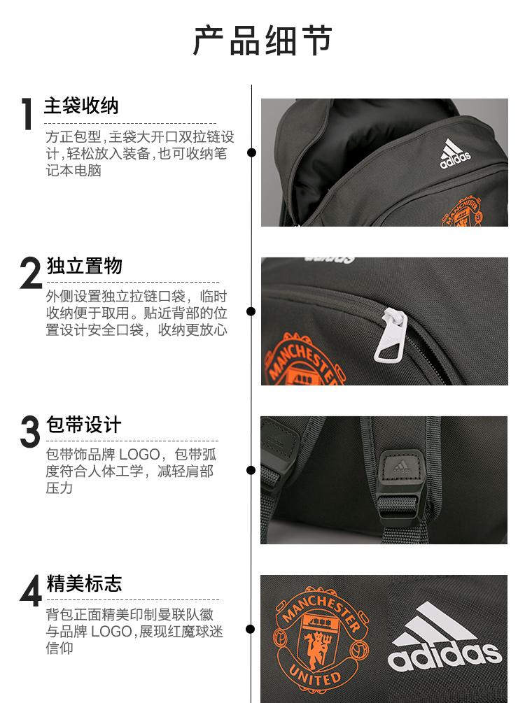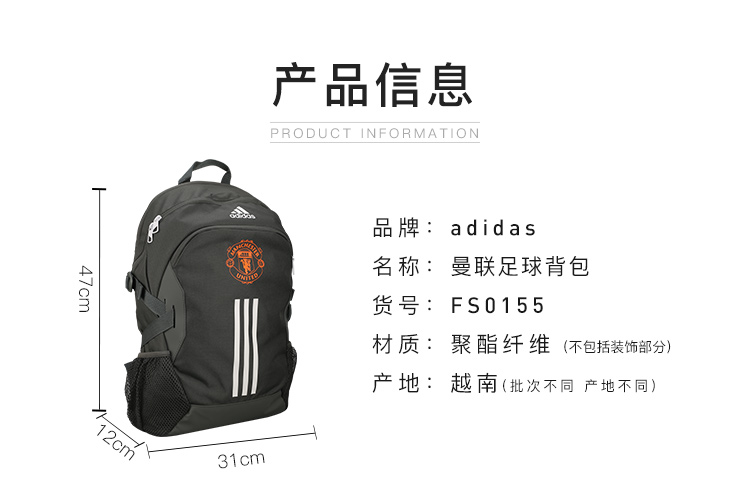 小李子:专柜正品ADIDAS阿迪达斯运动训练曼联足球双肩包男FS0155