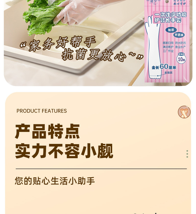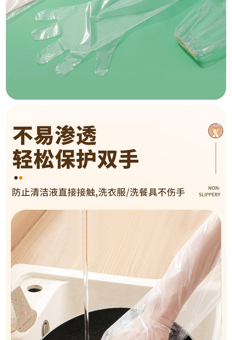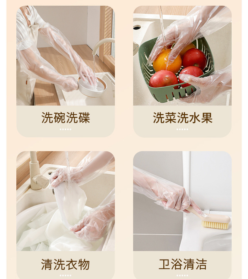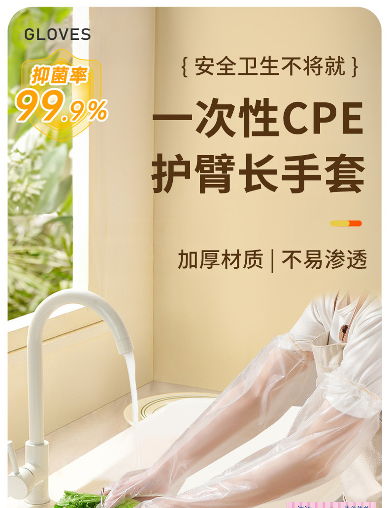 限时抢30个!【安全卫生不将就,一次性护臂长手套!】加长家务手套护臂 cpe一次性长手套 厨房清洁防水 透明塑料洗碗手套-QB