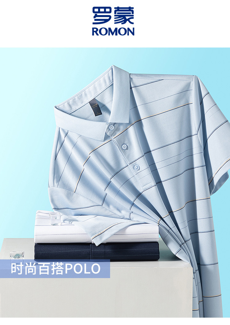 罗蒙男士夏季时尚polo衫男短袖休闲条纹polo衫爸爸装男士商务舒适短袖t恤男