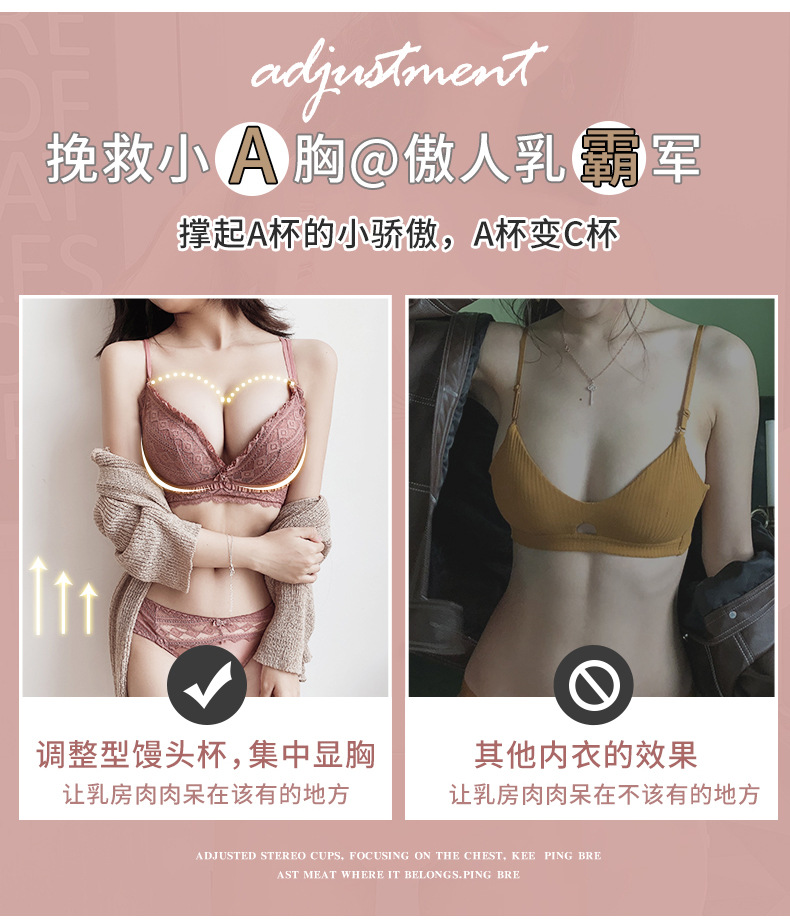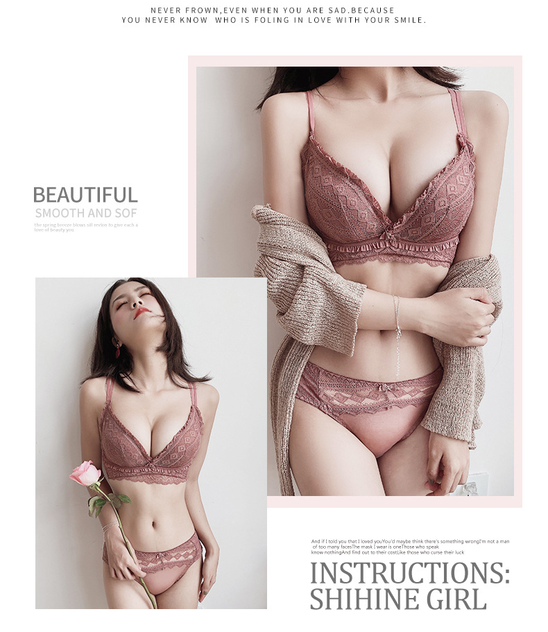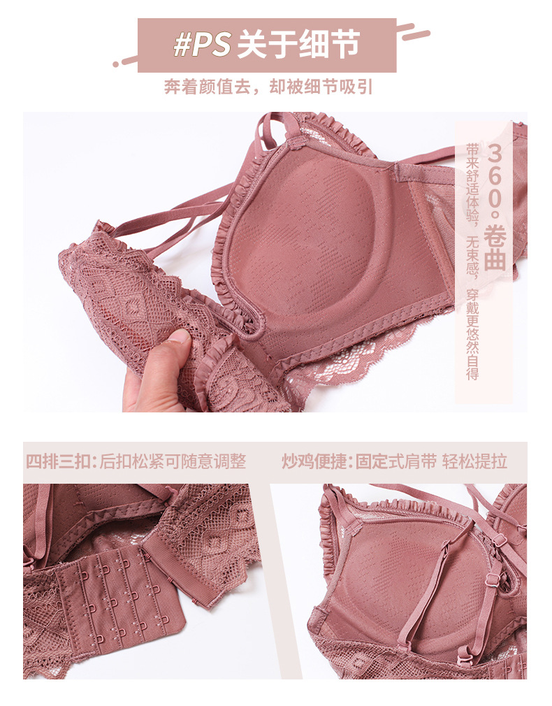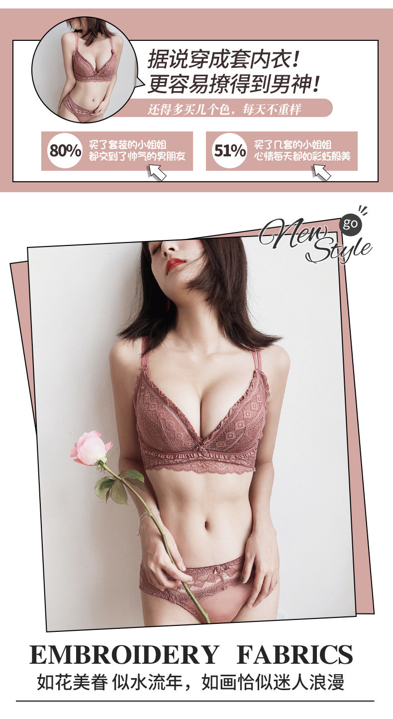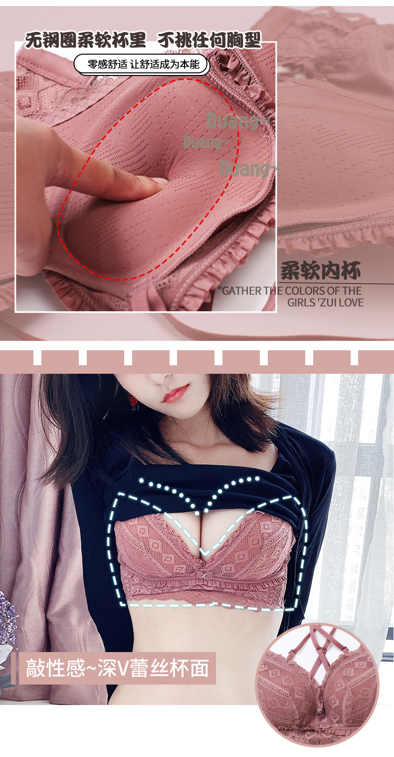 黛唯梵日系新品浪漫心扉蕾丝内衣女小胸聚拢美背文胸套装调整型上托收副乳无钢圈胸罩