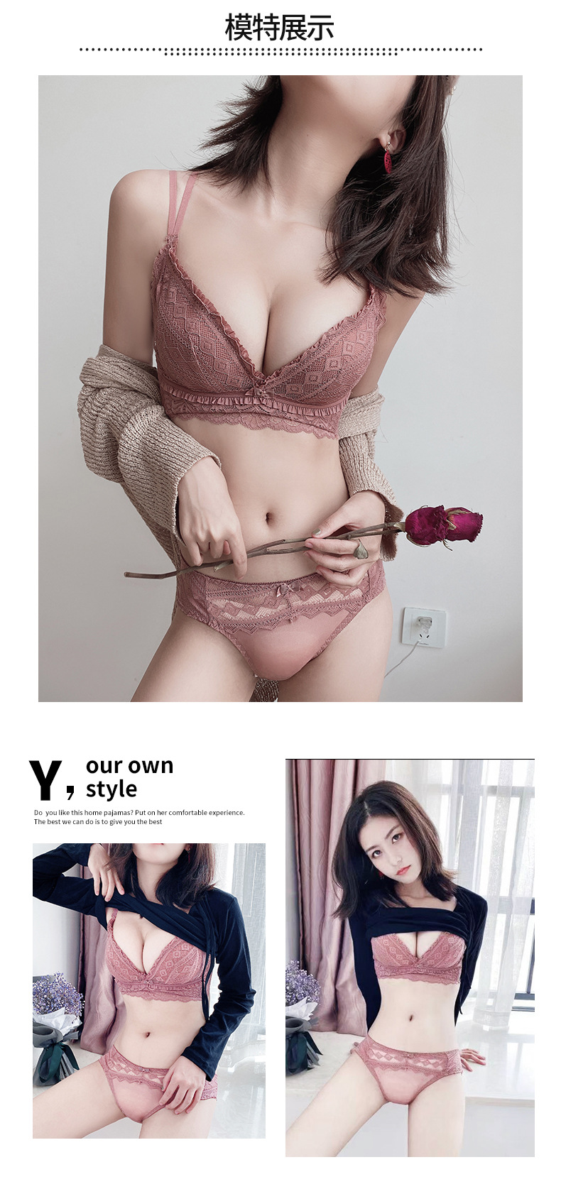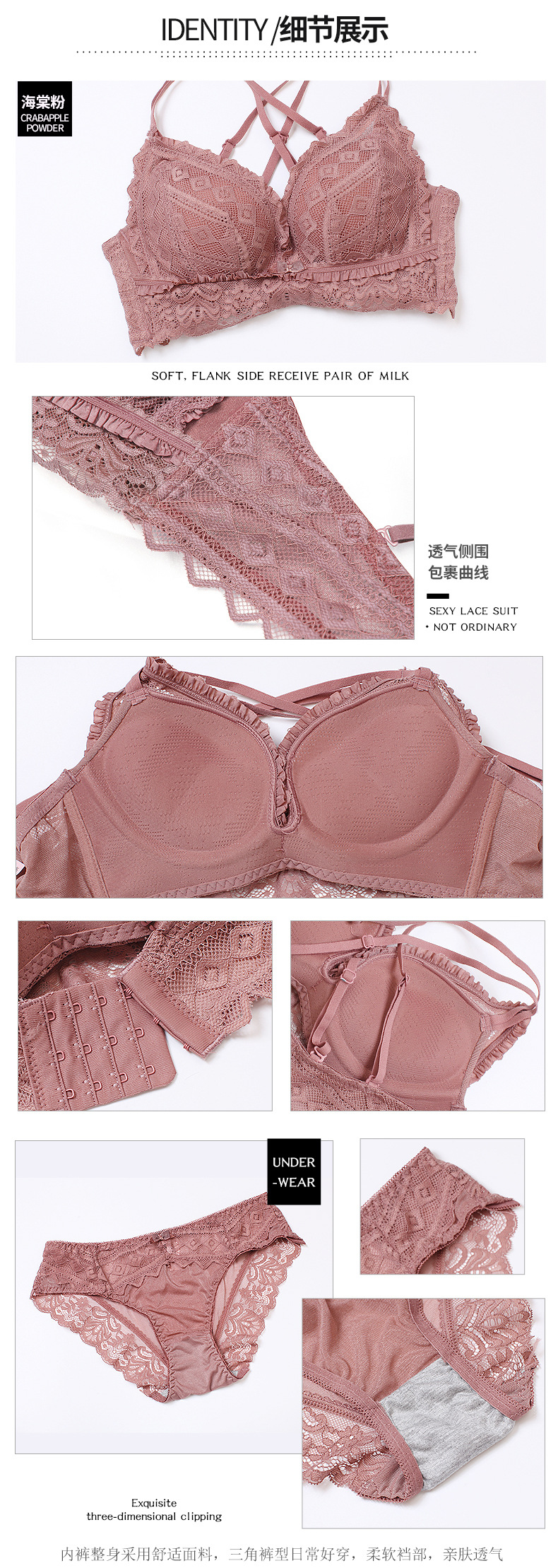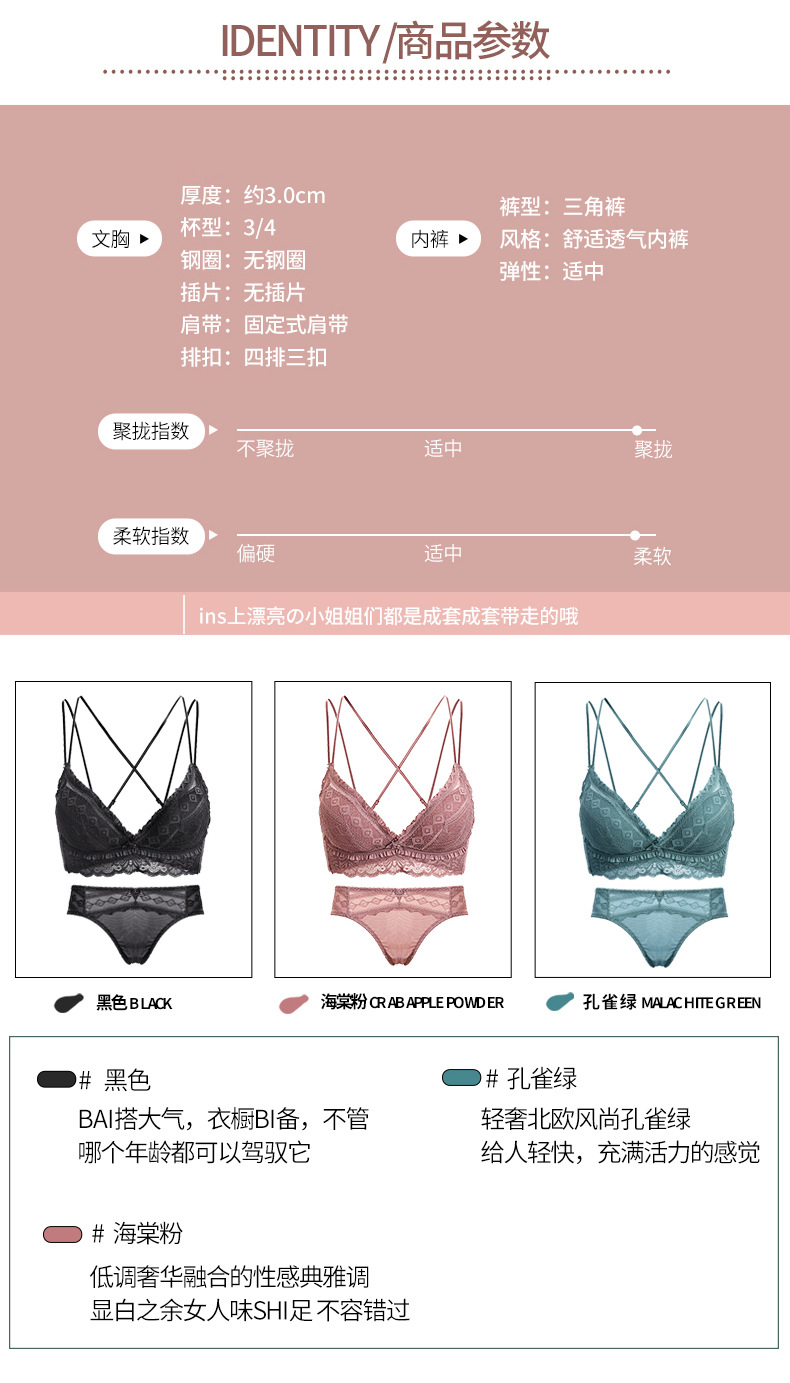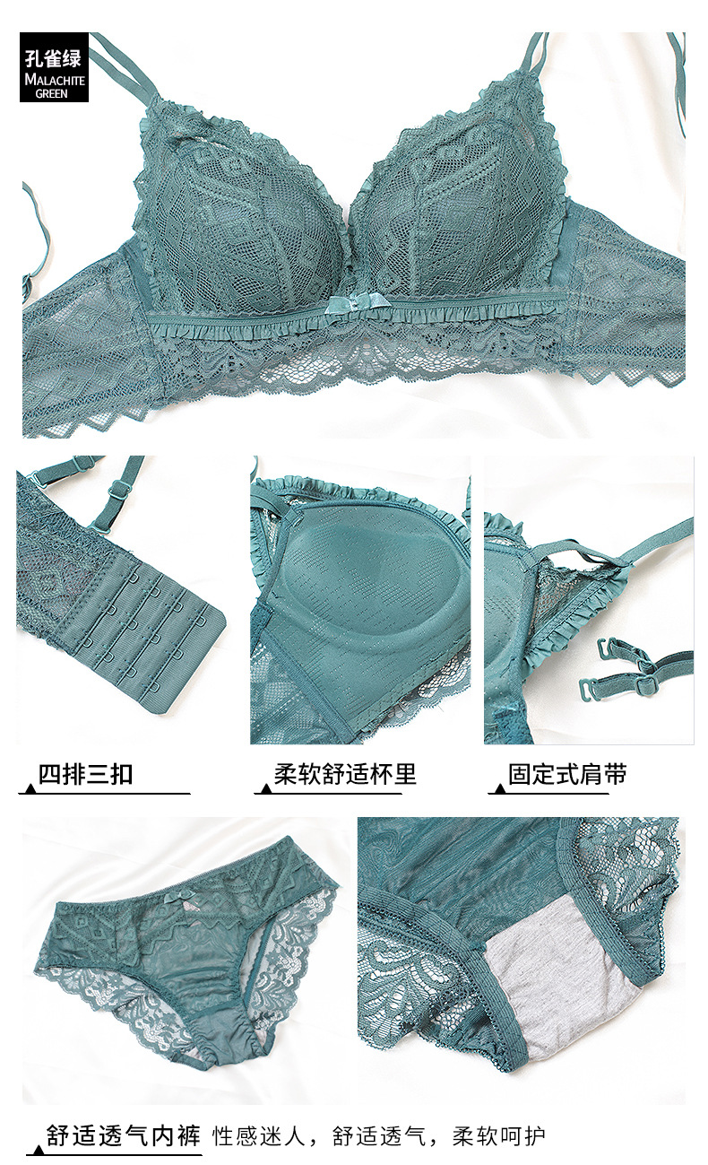 黛唯梵日系新品浪漫心扉蕾丝内衣女小胸聚拢美背文胸套装调整型上托收副乳无钢圈胸罩