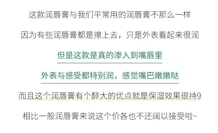 【功效】:修复润唇膜,唇纹保湿,滋润打底