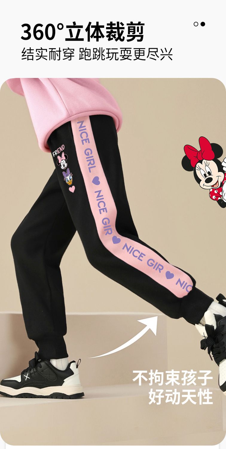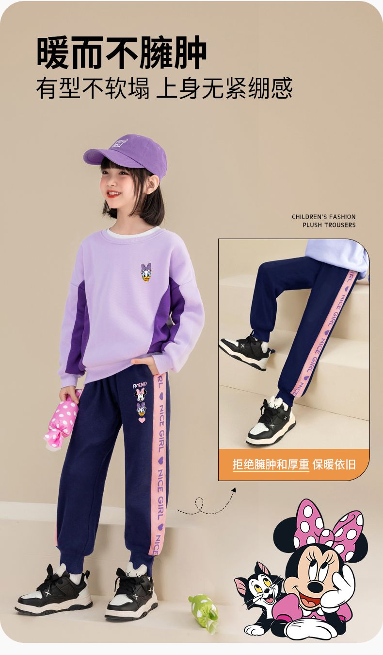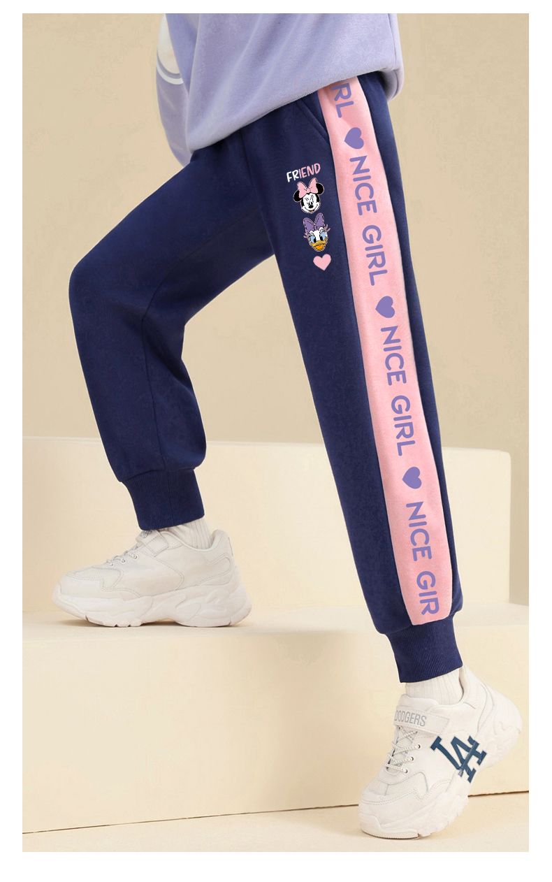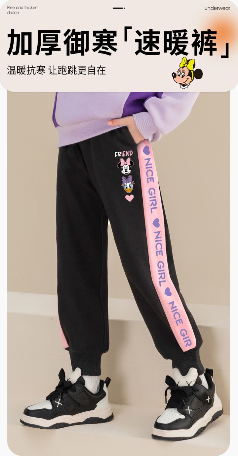 迪士尼女童加绒裤子冬外穿儿童运动裤棉裤休闲冬款一体绒加厚卫裤