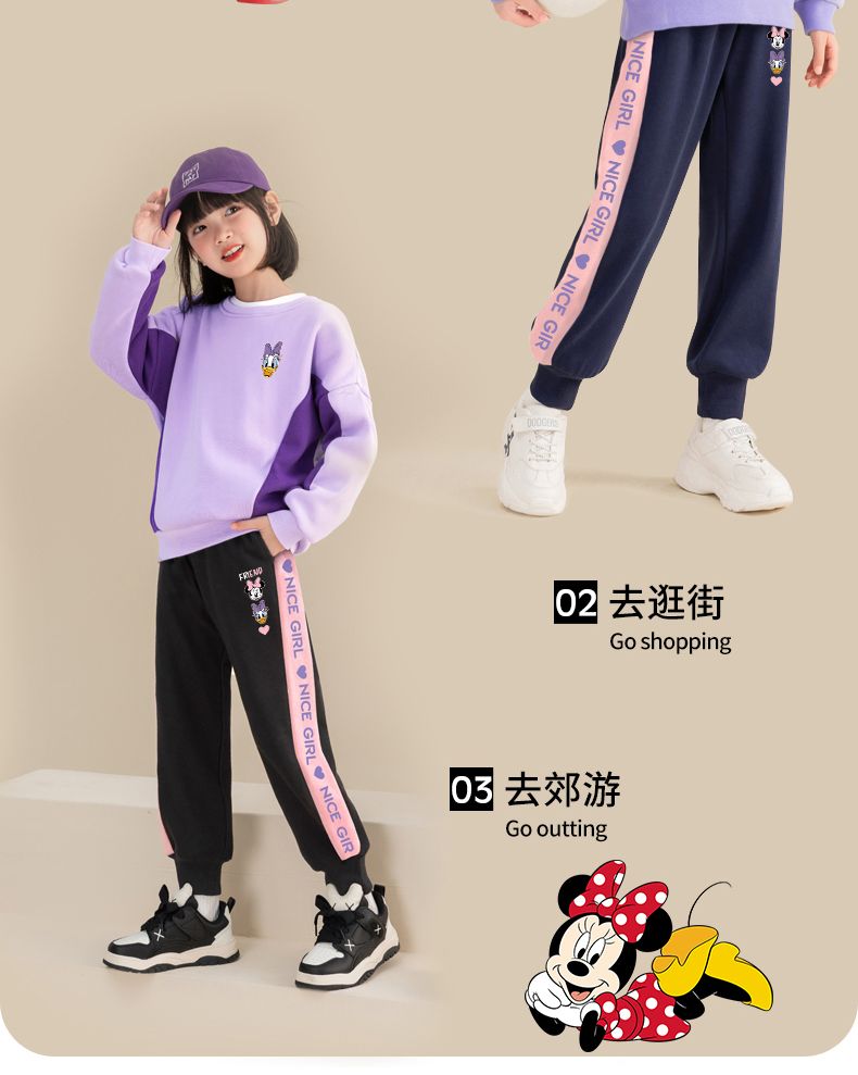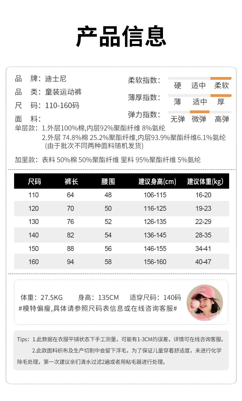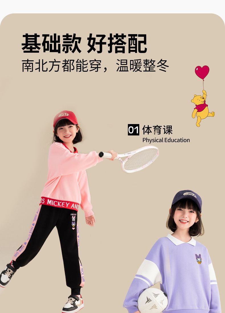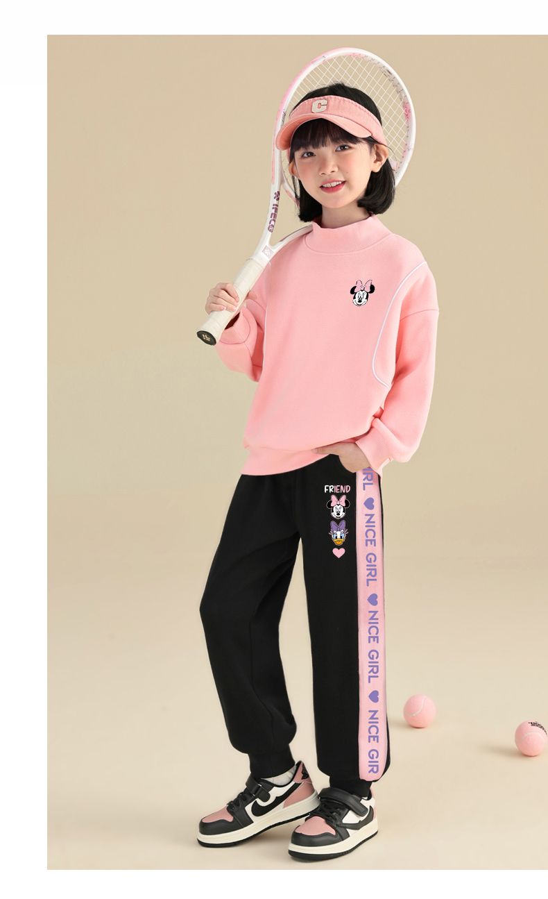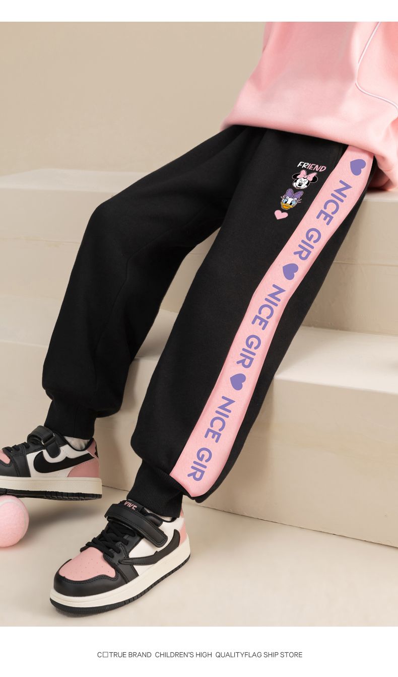 迪士尼女童加绒裤子冬外穿儿童运动裤棉裤休闲冬款一体绒加厚卫裤