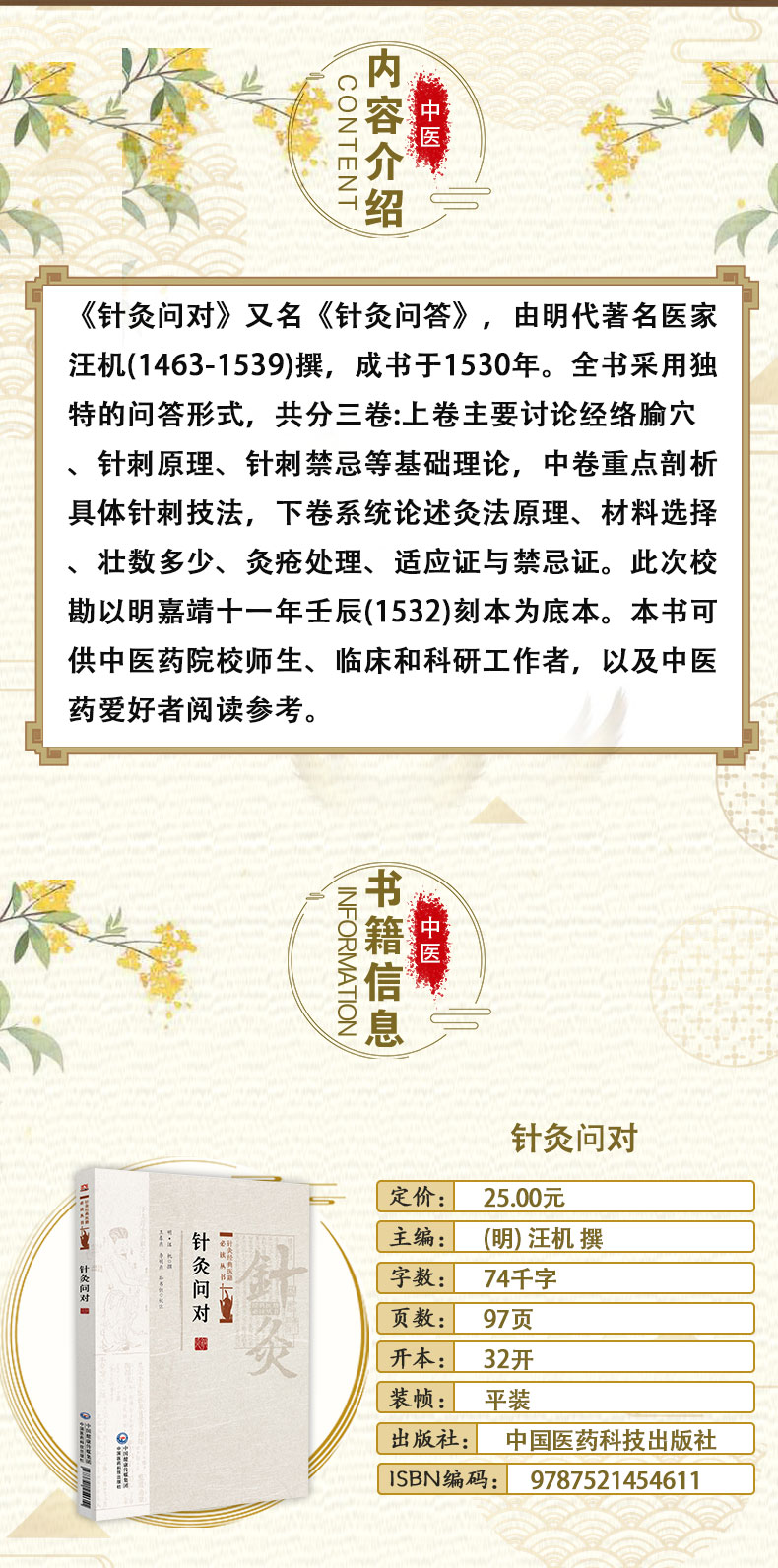 针灸问对 针灸经典医籍必读丛书(明)汪机撰 王春燕 李明燕 孙书恒校注 供中医药院校师生中医药爱好者阅读参考中国医药科技出版社