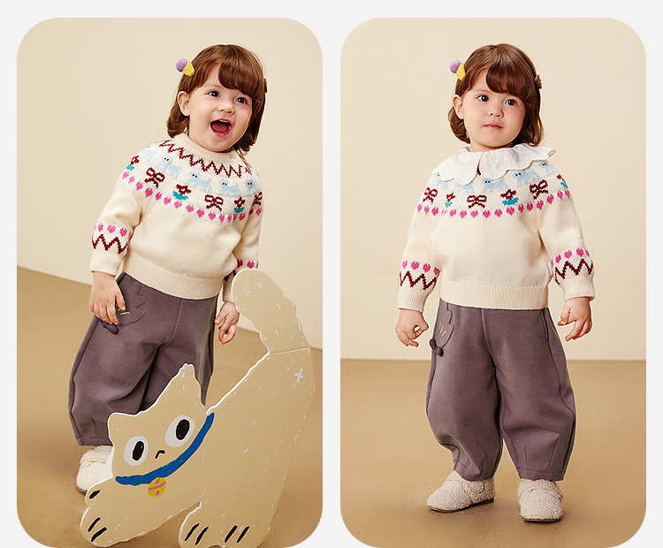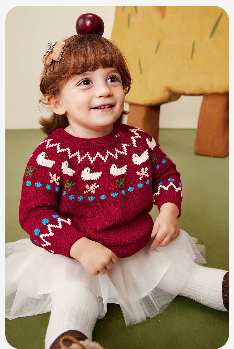 [亲子艺术家联名]迷你巴拉男女童成人毛衣2025冬萌趣节日氛围毛衫