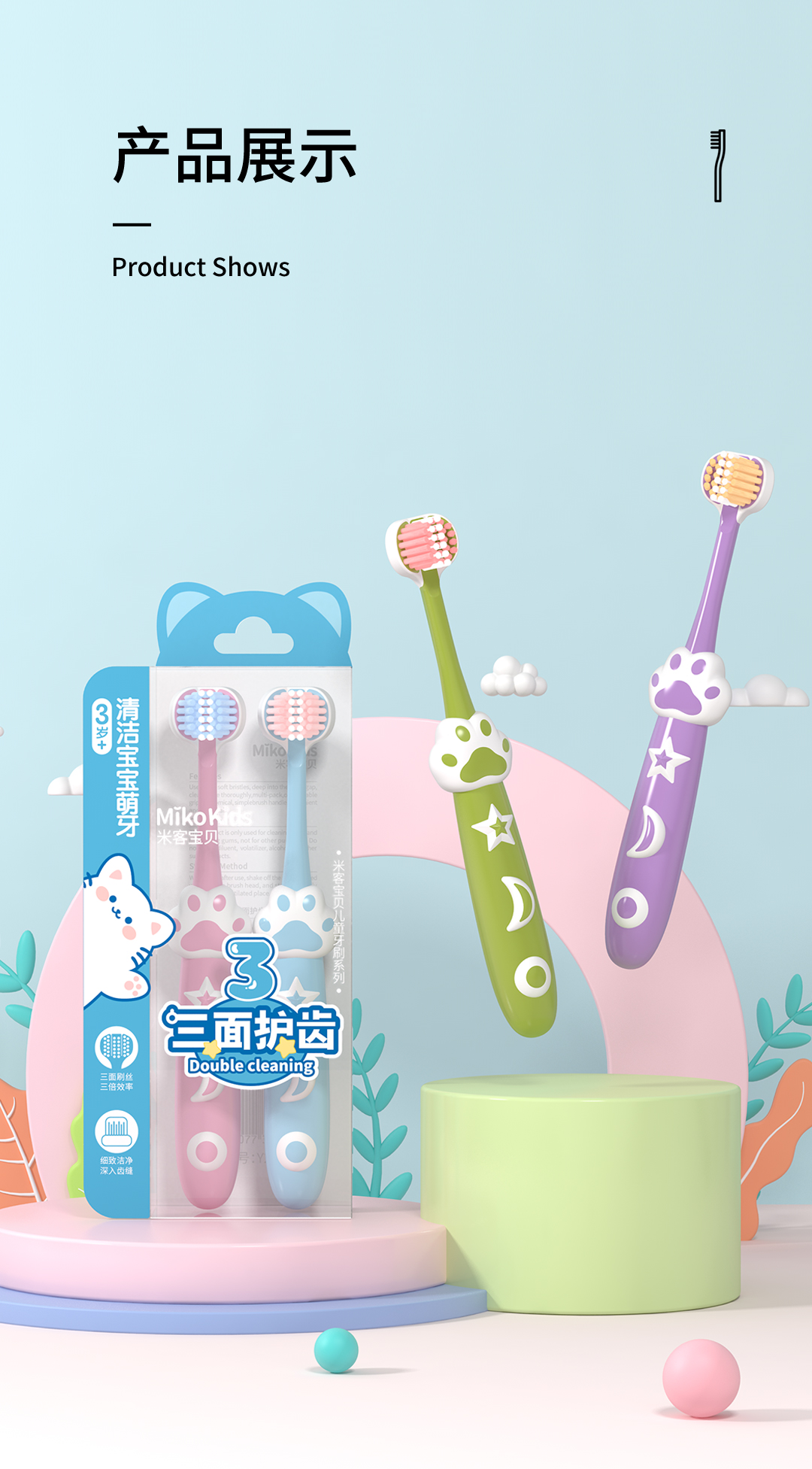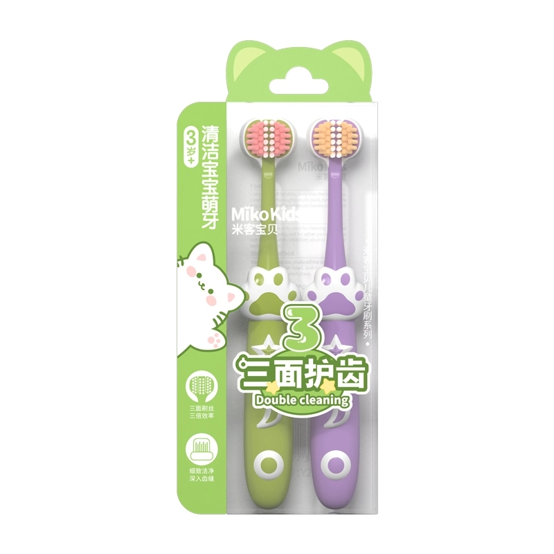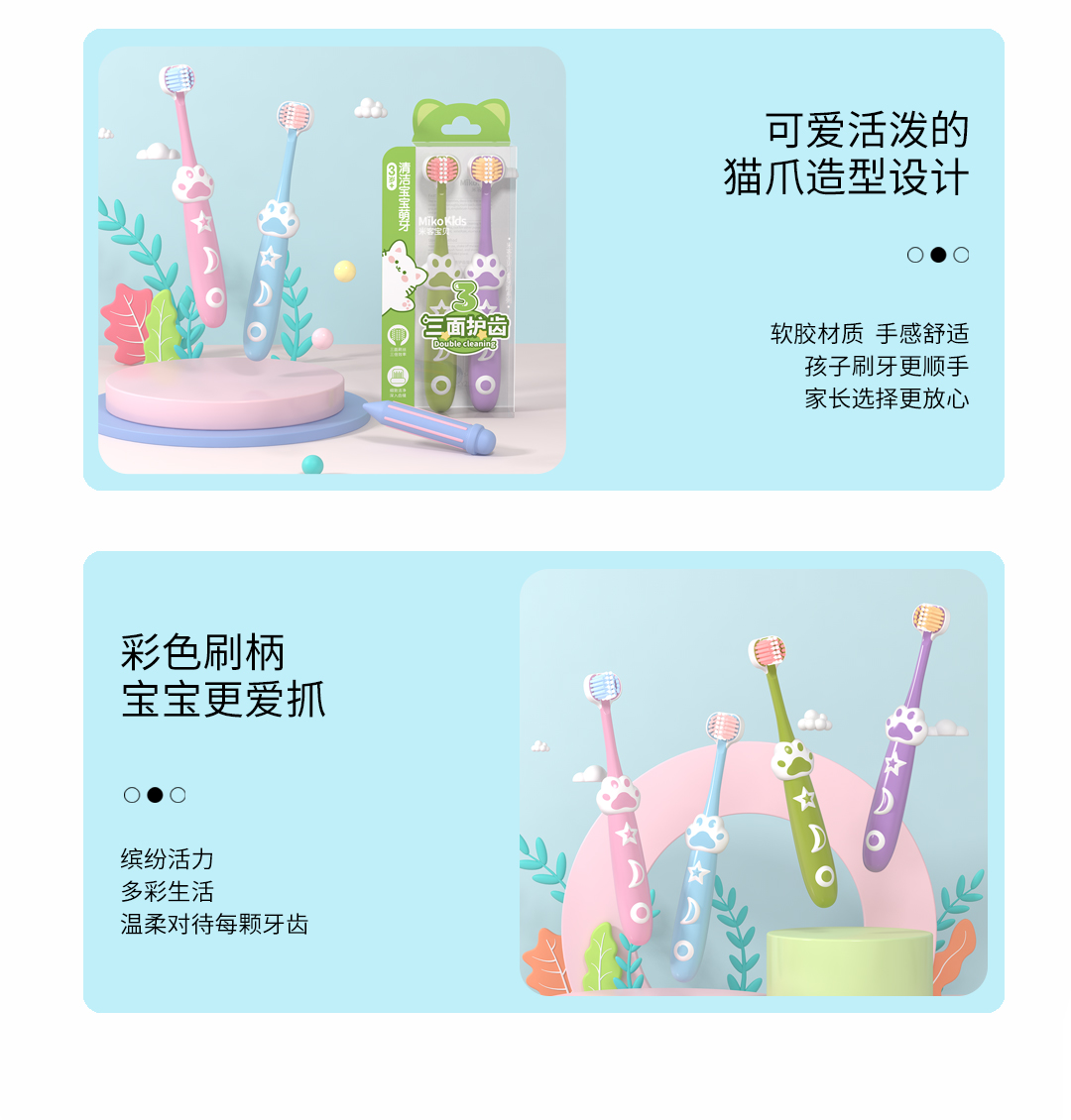 米客宝贝三面护齿猫爪儿童牙刷(241001)颜色随机发