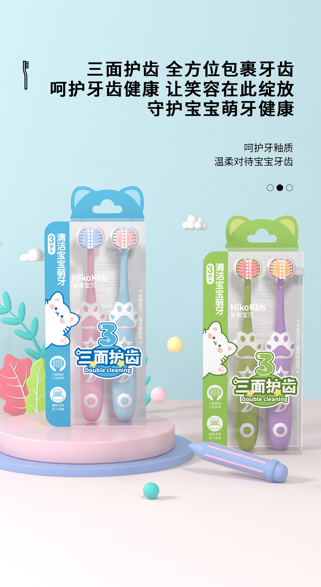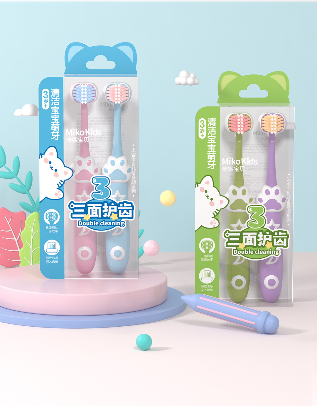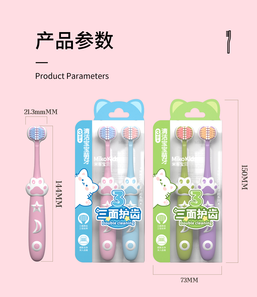 米客宝贝三面护齿猫爪儿童牙刷(241001)颜色随机发
