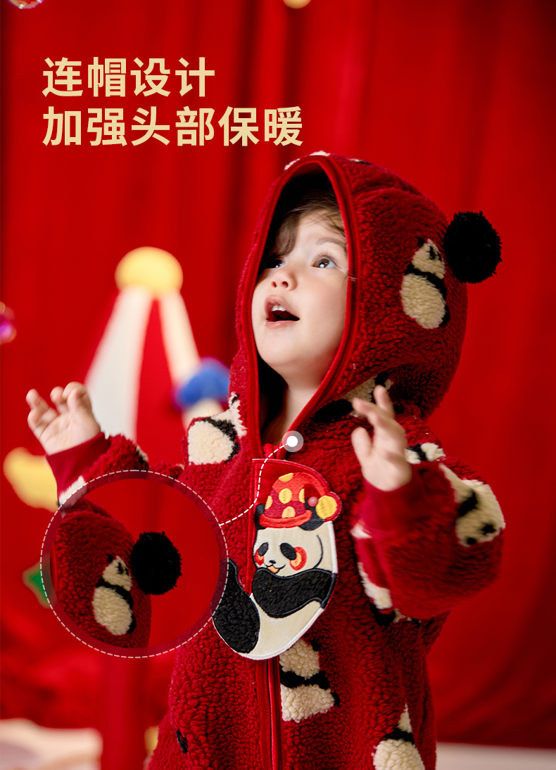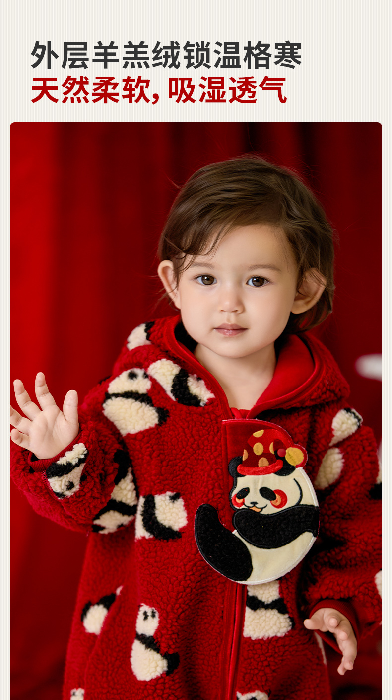 年衣童装儿童哈衣爬服冬款宝宝新年装男女童中式衣盼达乖乖连体衣
