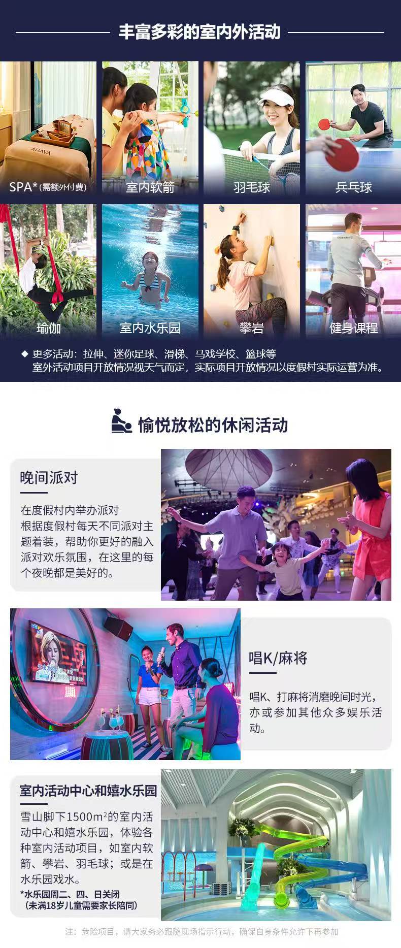 超十余种室内及室外娱乐活动,