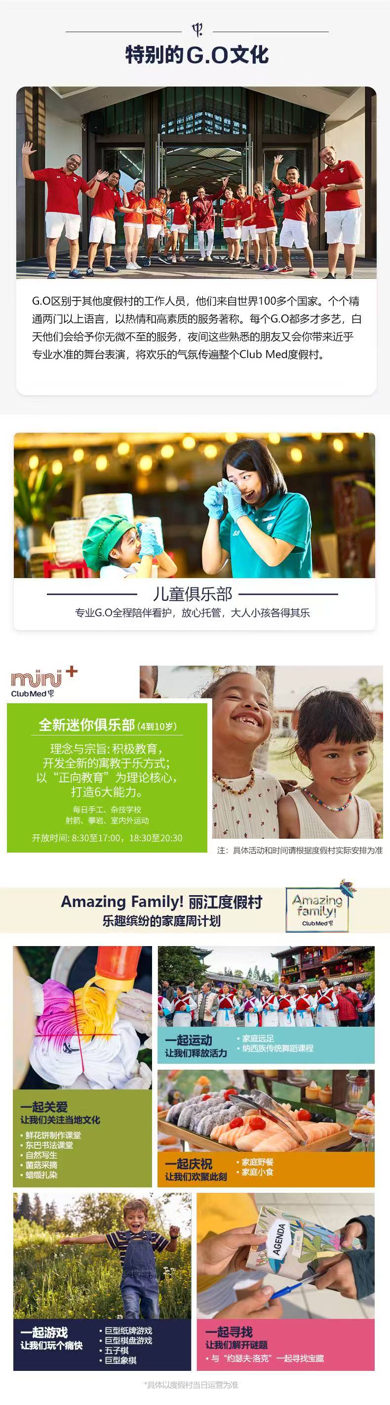 一价全包模式,有儿童托管俱乐部,每日提供丰富的活动,适合全家出游,省心省力!
