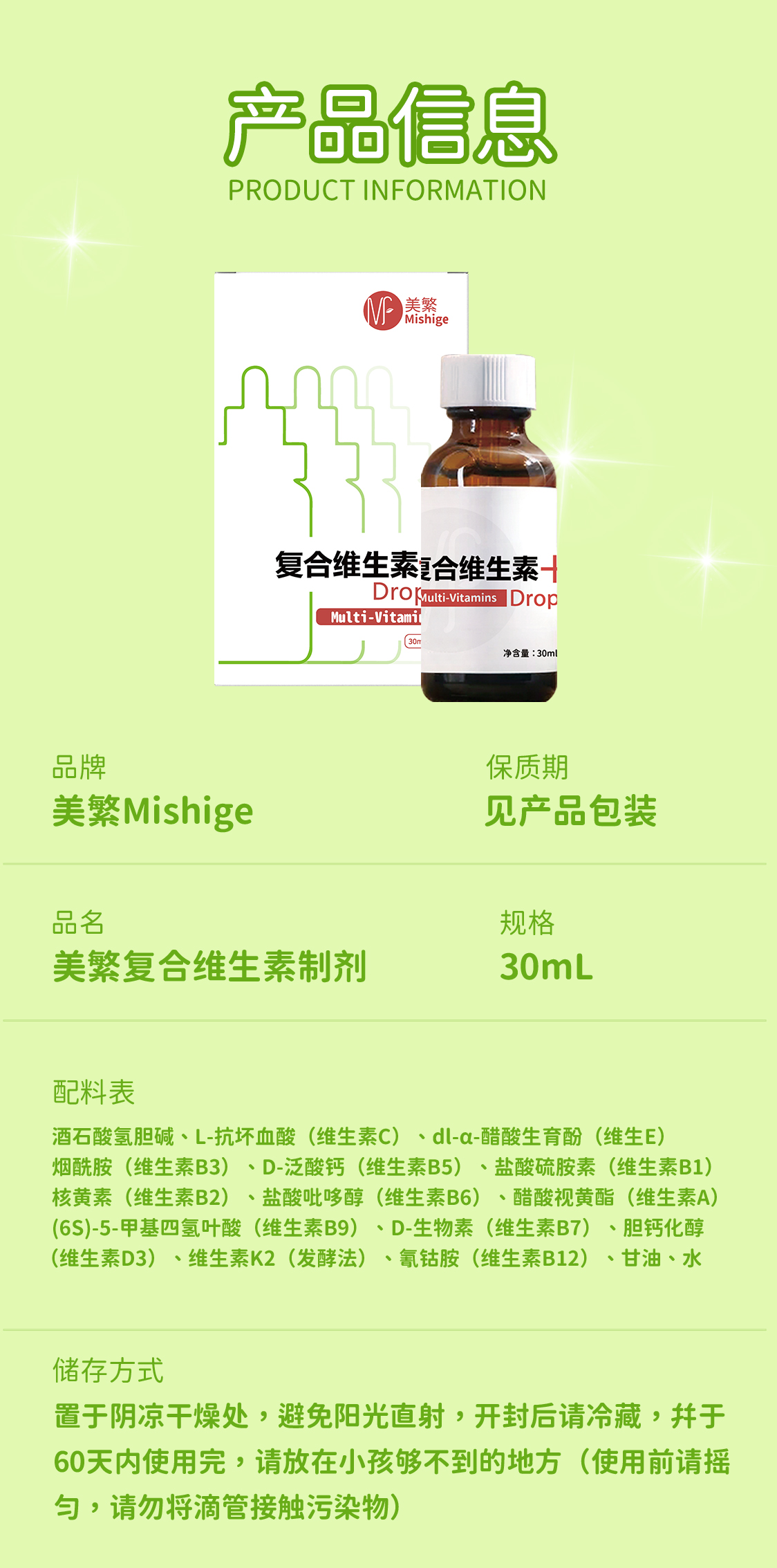 Mishige/美繁复合维生素液体滴剂VA/D3/VE/K2/VC/VB多种维生素