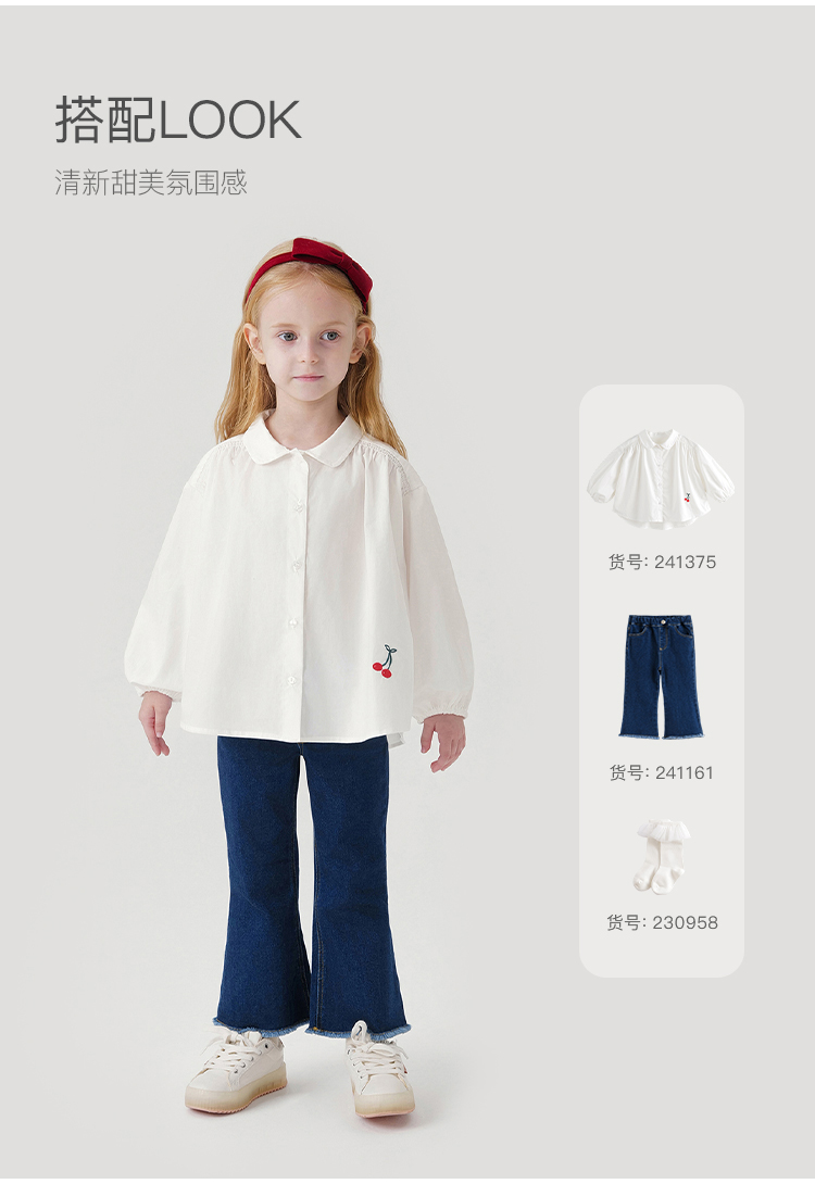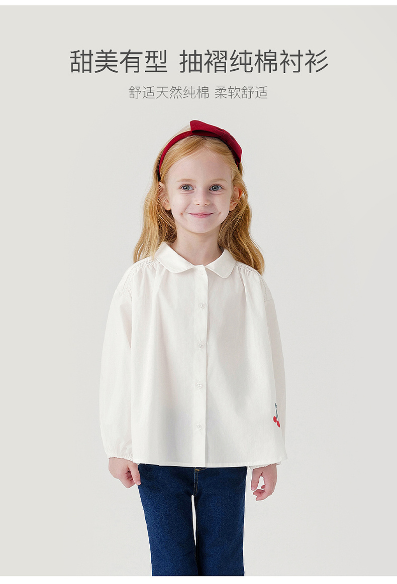 马克珍妮女童樱桃刺绣纯棉衬衫儿童衬衣上衣2024年秋装新款241375