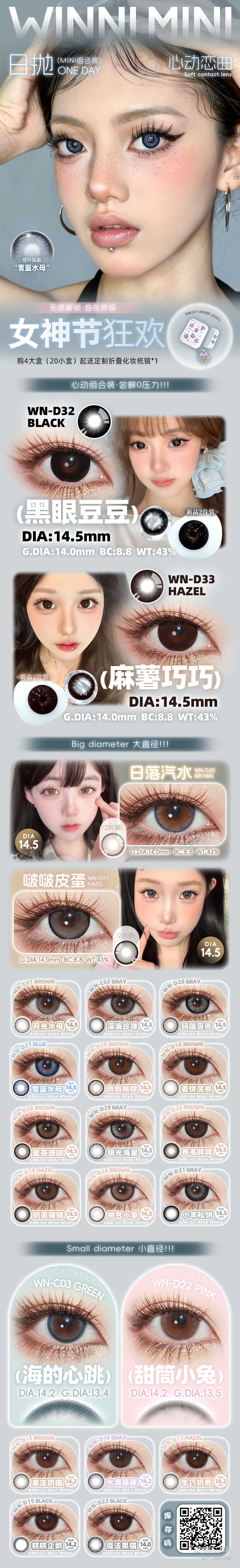「韩国 」158/2盒288/4盒388/6盒 WINNI 日抛10片装 4盒起送定制随心拆分.化妆包*1 +nini •便携折叠梳镜*1