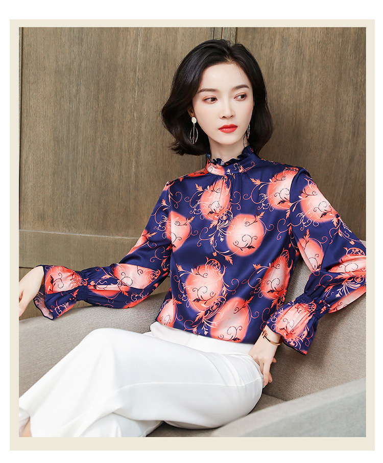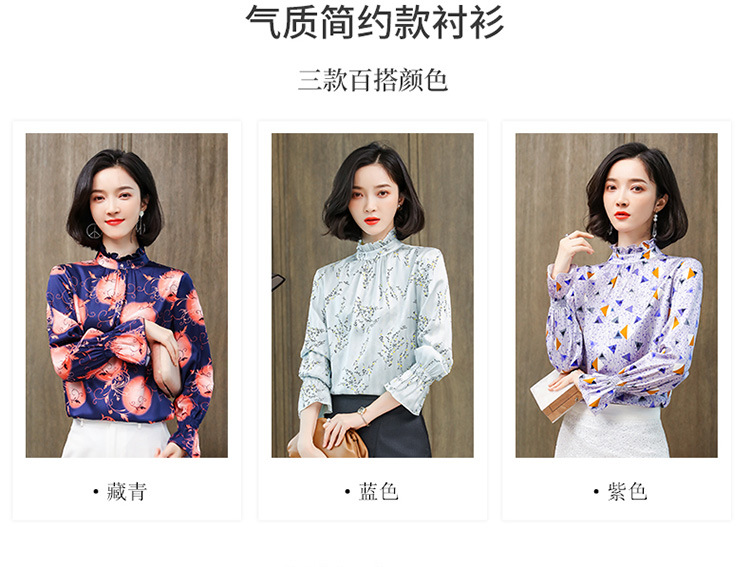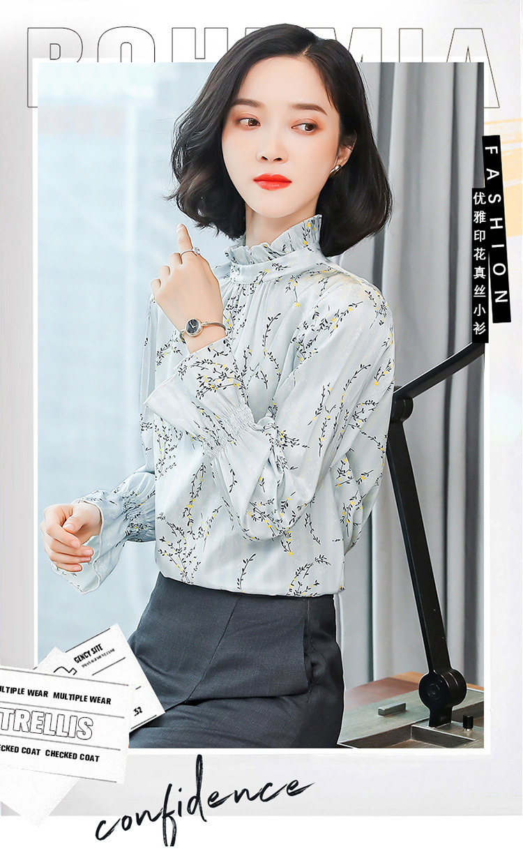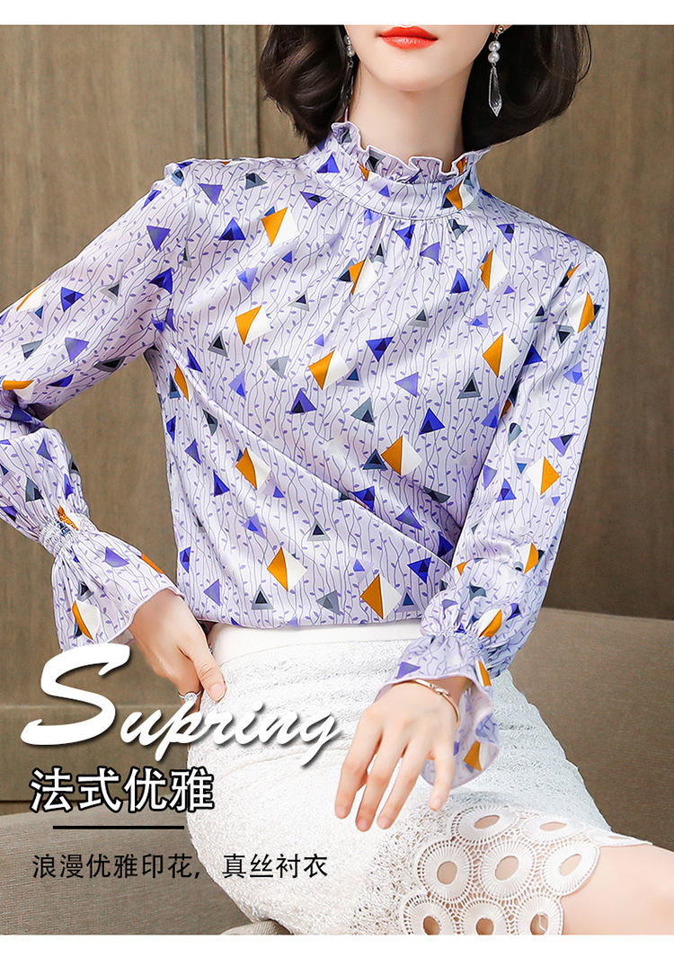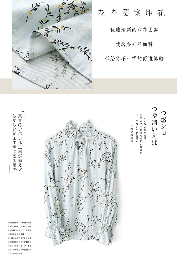 真丝衬衫女木耳边小立领洋气复古秋装新款法式温柔桑蚕丝衬衣