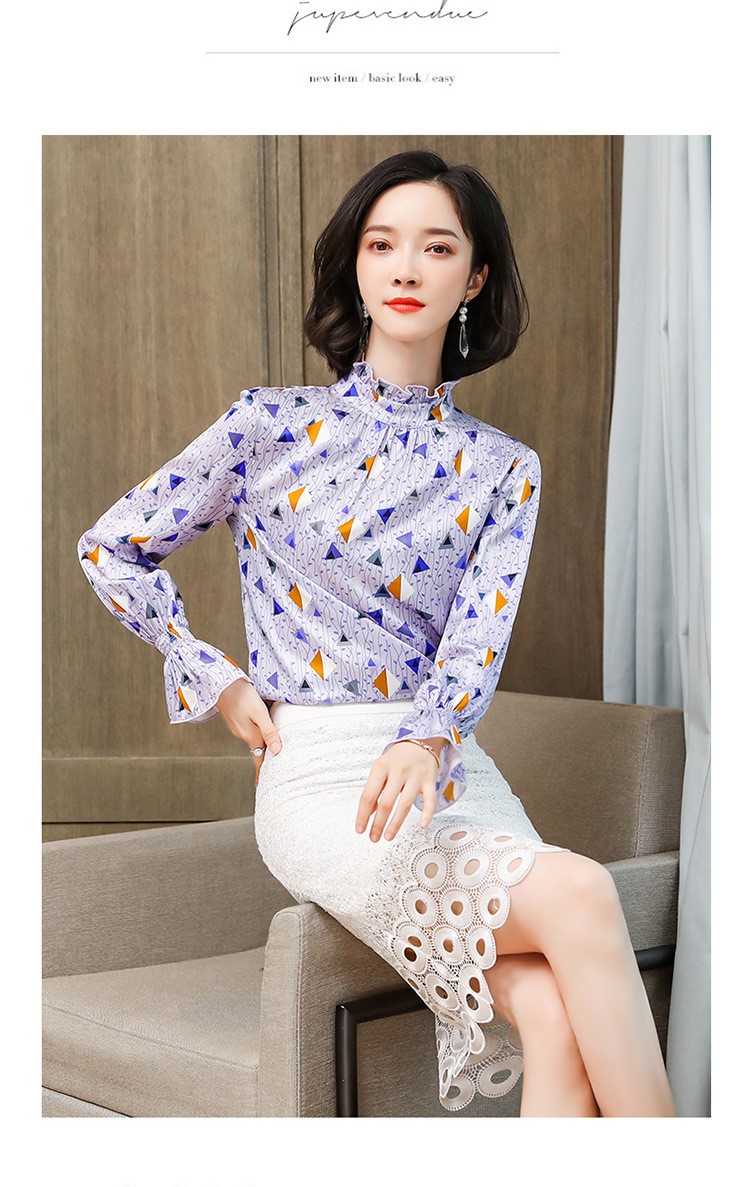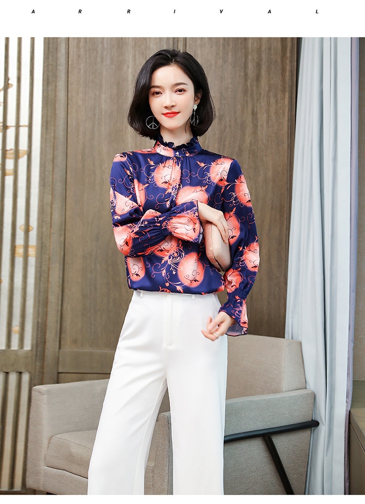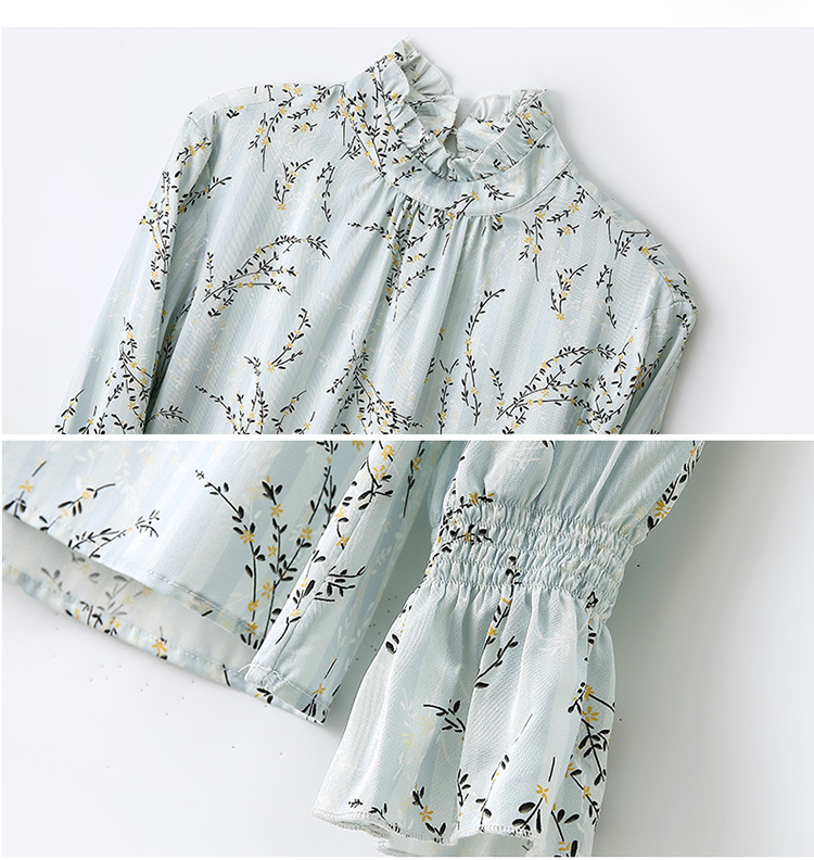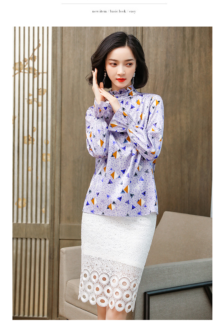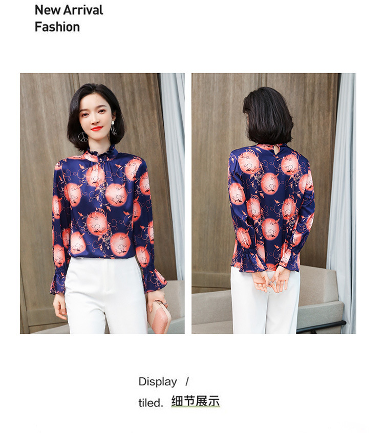 真丝衬衫女木耳边小立领洋气复古秋装新款法式温柔桑蚕丝衬衣