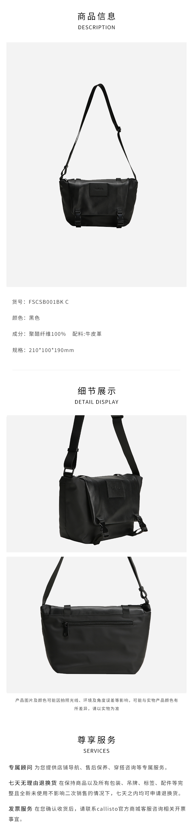 callisto黑色户外动感单肩包 FSCSB001C BK