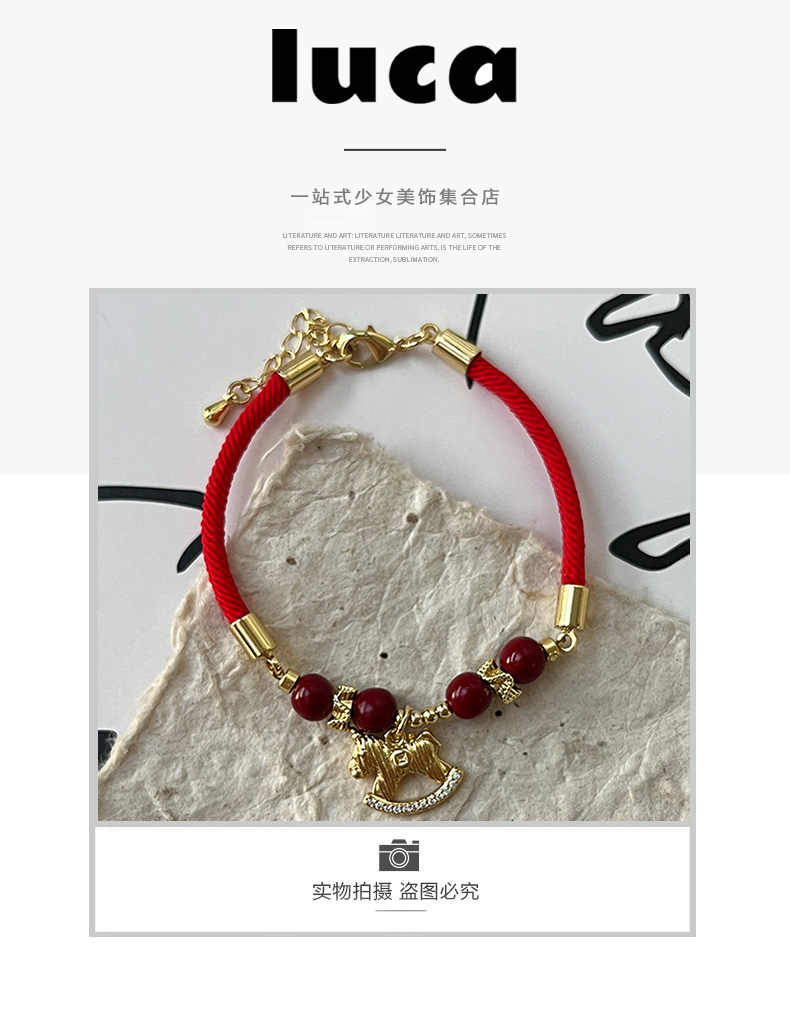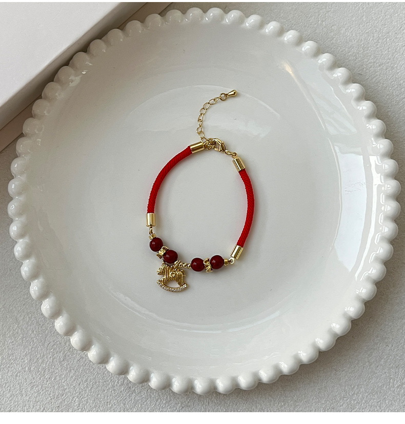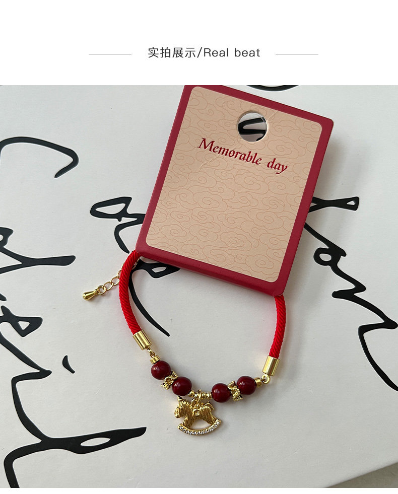 阿吉豆红绳马上有钱吊坠红色玛瑙手链本命年小马串珠-纪念日百货门店同款168646075