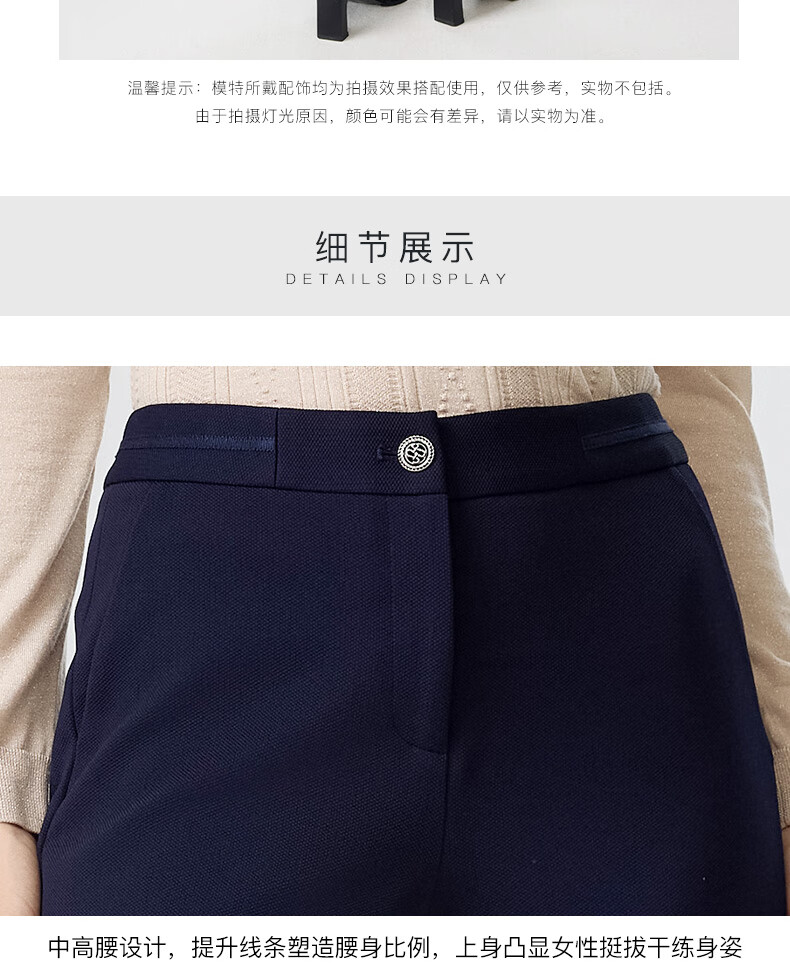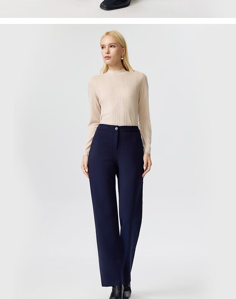皮尔卡丹女装裤子休闲裤修身通勤干练简约直筒长裤P3316T3993N0