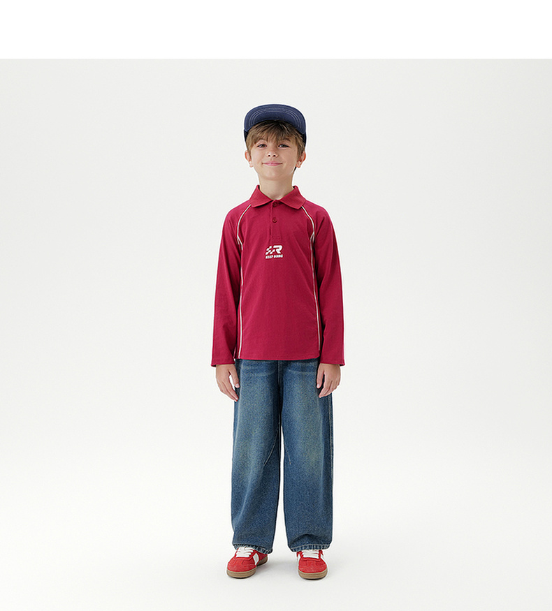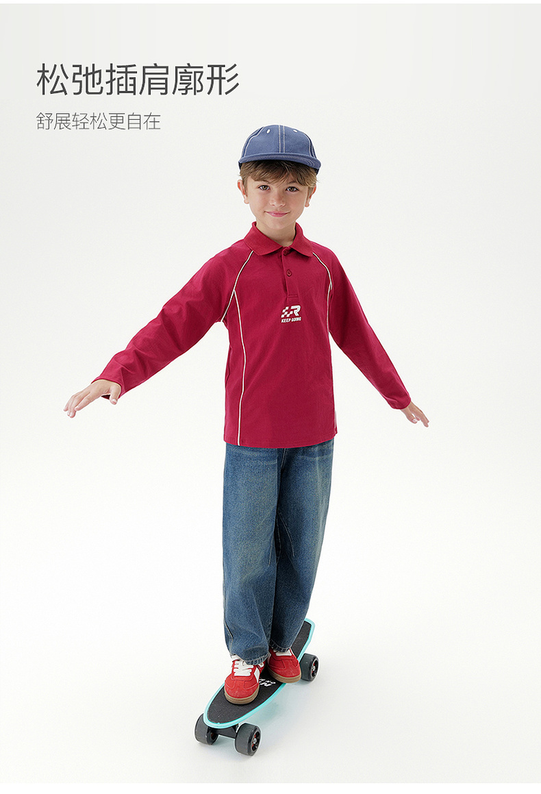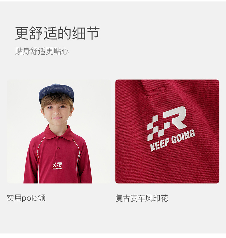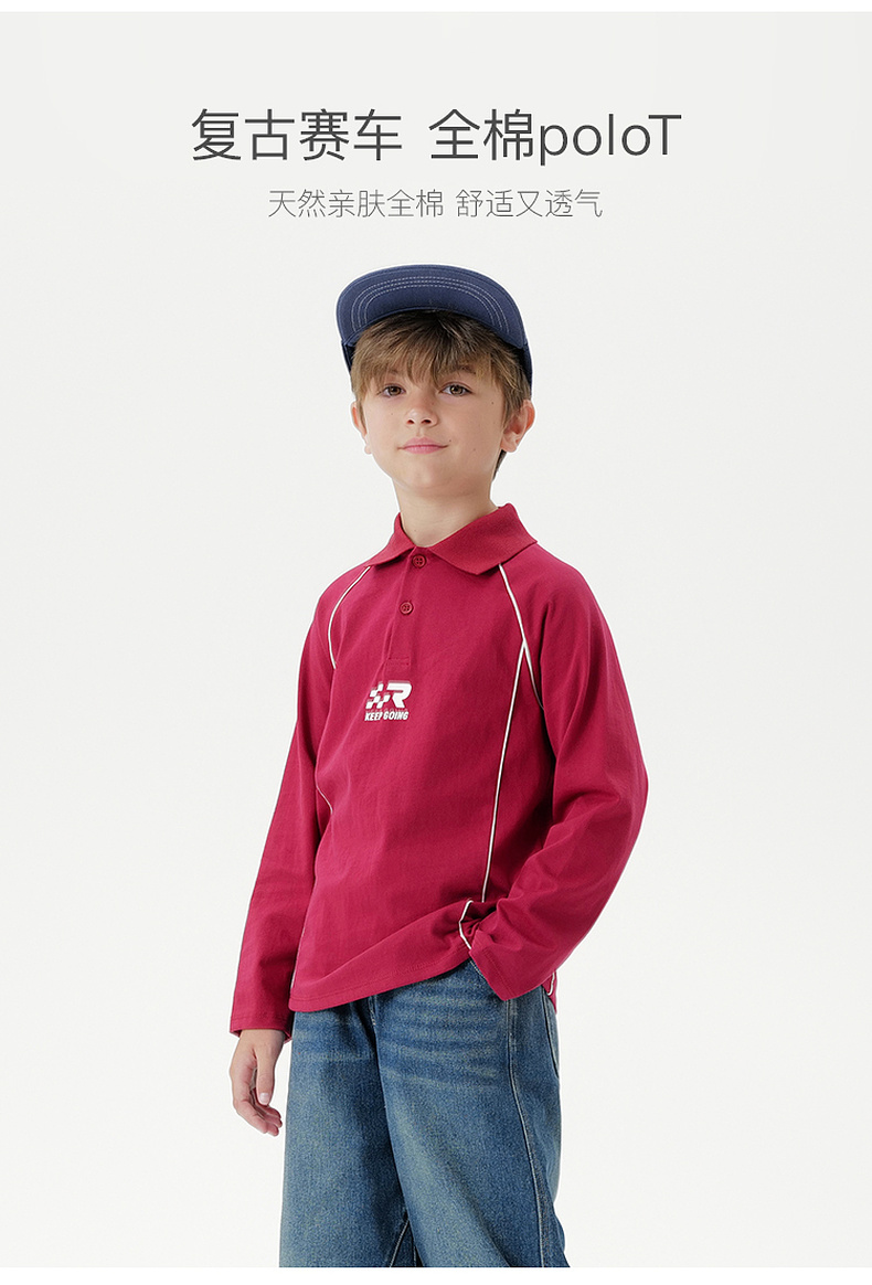 马克珍妮男童复古赛车全棉poloT恤2025年秋装新款551136