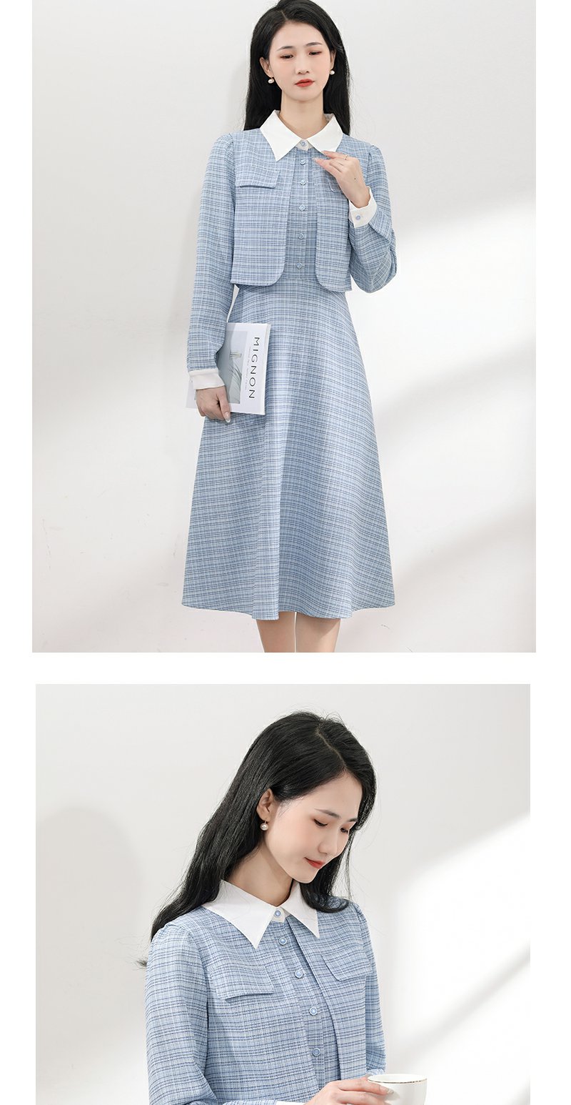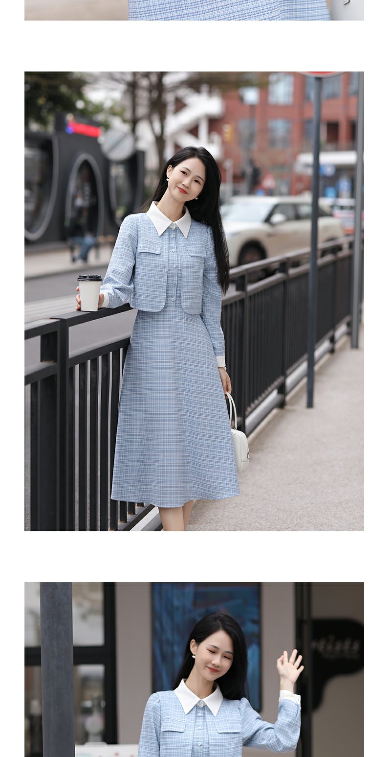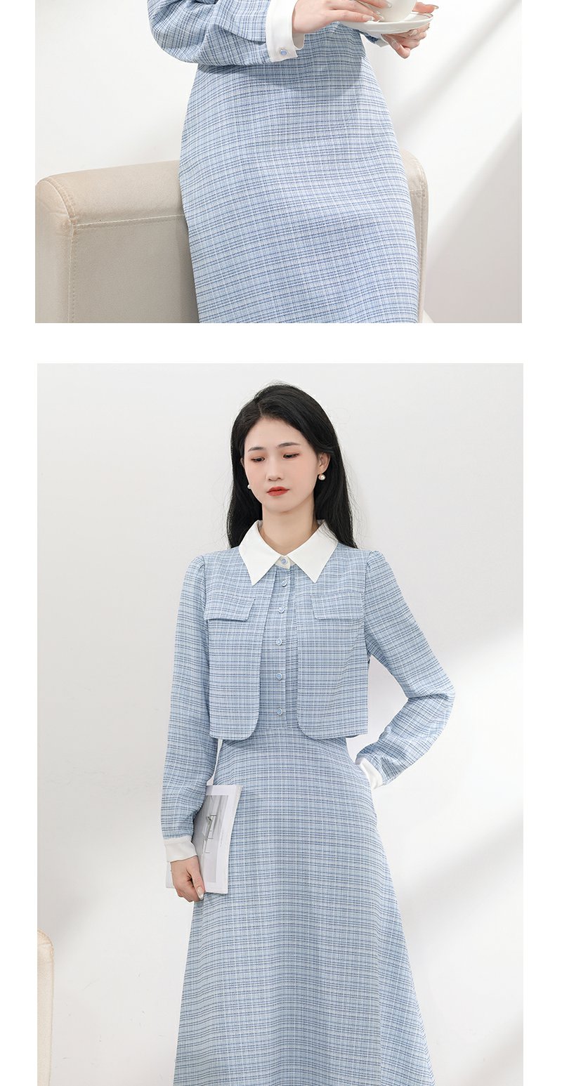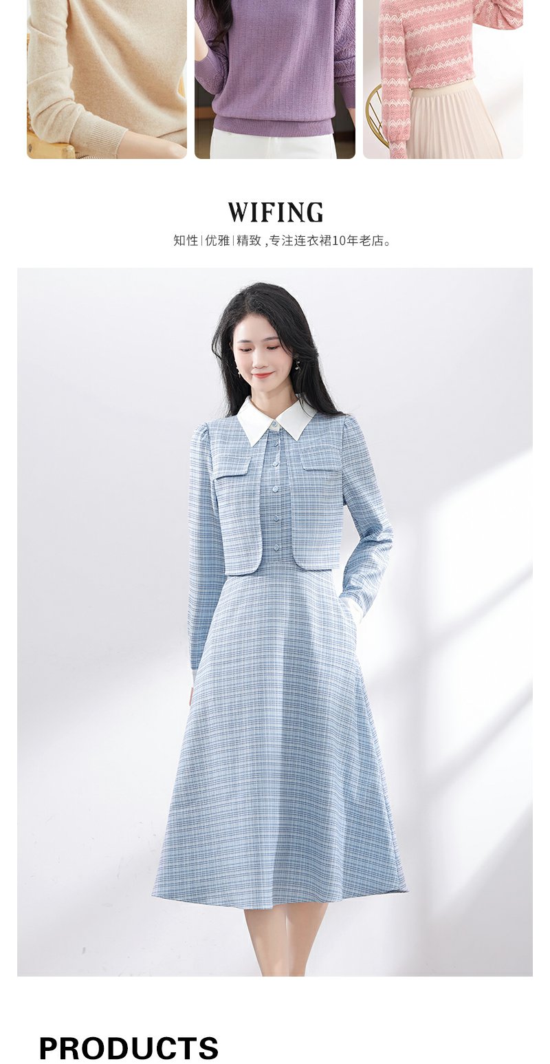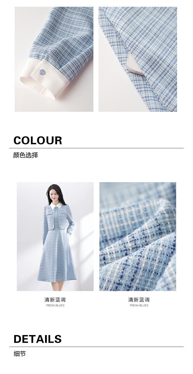 未风蓝色小香风假两件连衣裙女2024秋季新款气质长裙早秋显瘦裙子